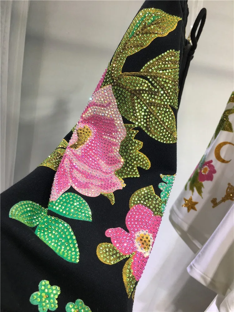 Oversized rhinestone diamond high-waisted black adjustable waist wide leg slacks Women’s shorts