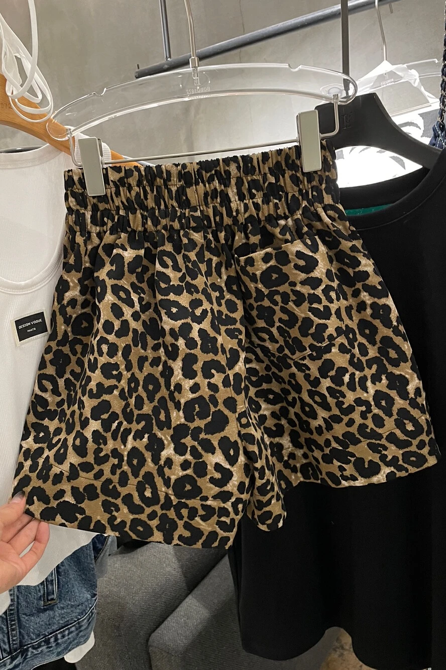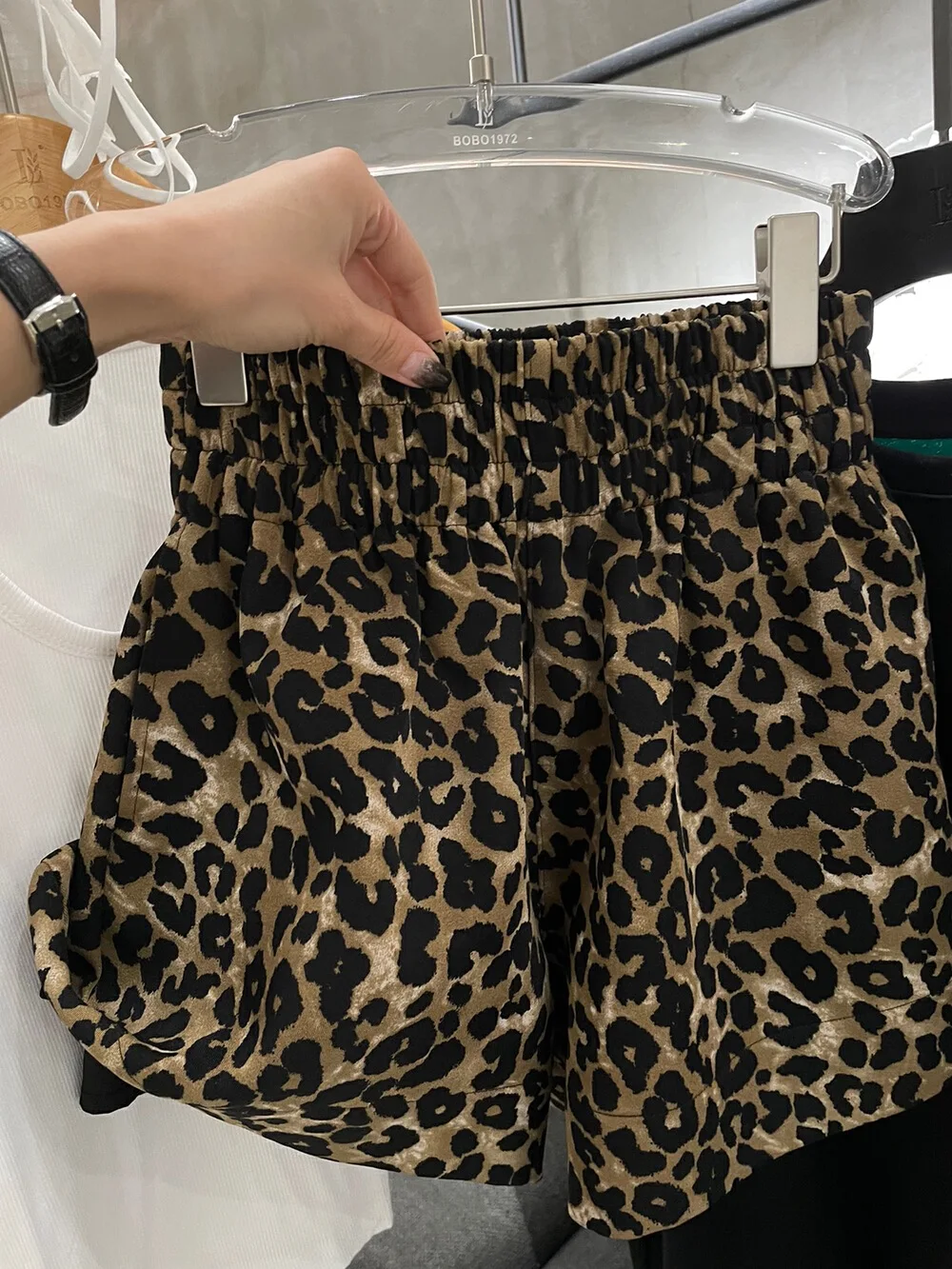 Oversized summer thin ins wide legs high waist slimming A-type pants casual pants leopard print women’s shorts