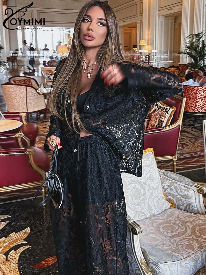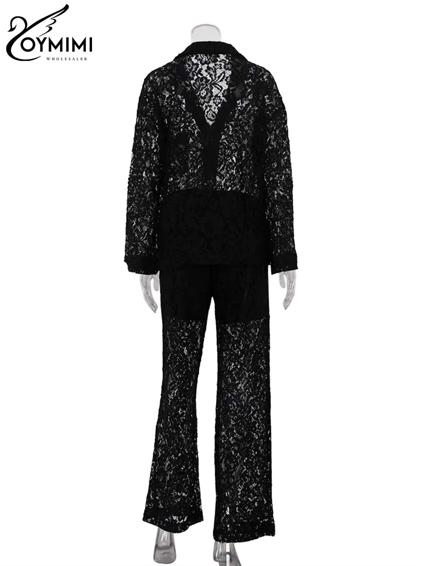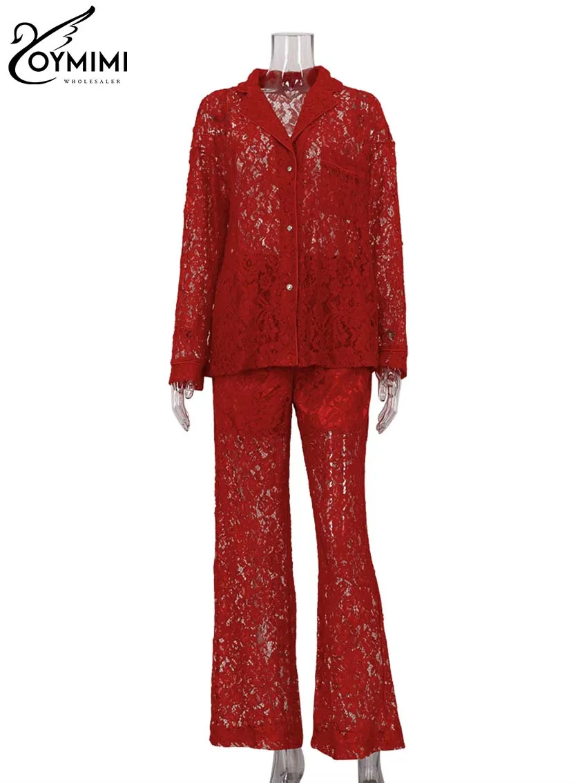Oymimi Summer Pink Perspective Sets Womens 2 Piece Casual Long Sleeve Button Shirts And High Waist Straight Trousers Female Sets