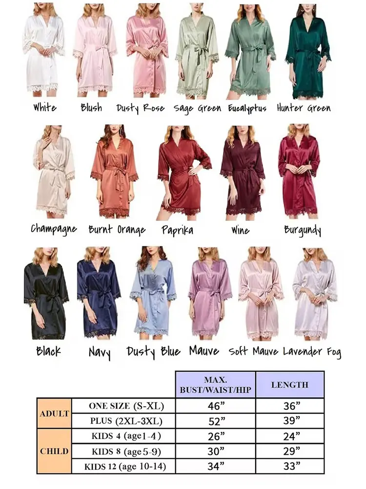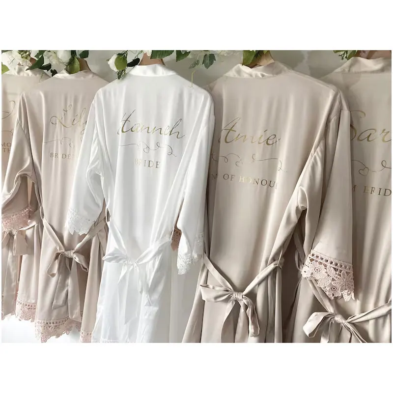 Personalised Champagne Robes Bride Gift Bridesmaid Robes Satin Lace Dressing Gown Bridal Robes Wedding Kimono Bachelorette Party