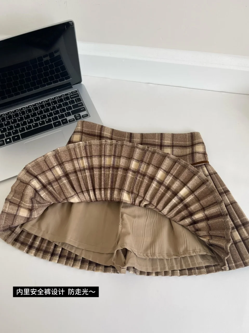 Plaid Pleated Mini Skirt Thick Wool Short Skirt High Waist Box-pleat Miniskirt for Women Teen-girl Preppy Style Outfit