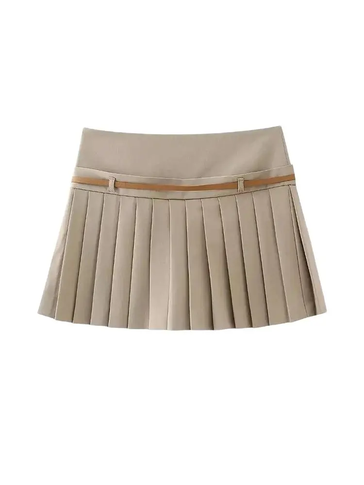 Pleated Shorts Skirts for Women With Belt, Side Zipper, Mid Waist, Female Skort, Chic Fashion