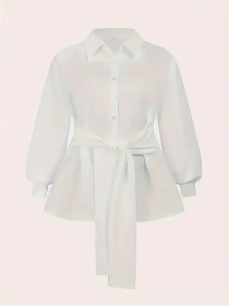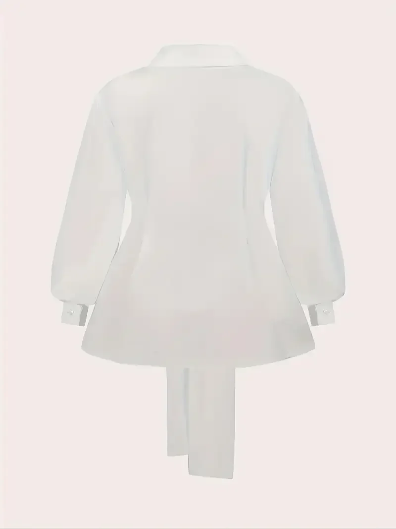 Plus Size 1XL-5XL Fashion Women‘s Solid Color Lapel Collar Blouse Ladies Casual Elegant Chic Top Long Sleeves Shirt
