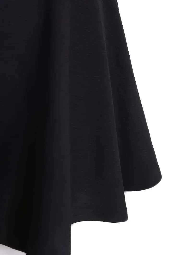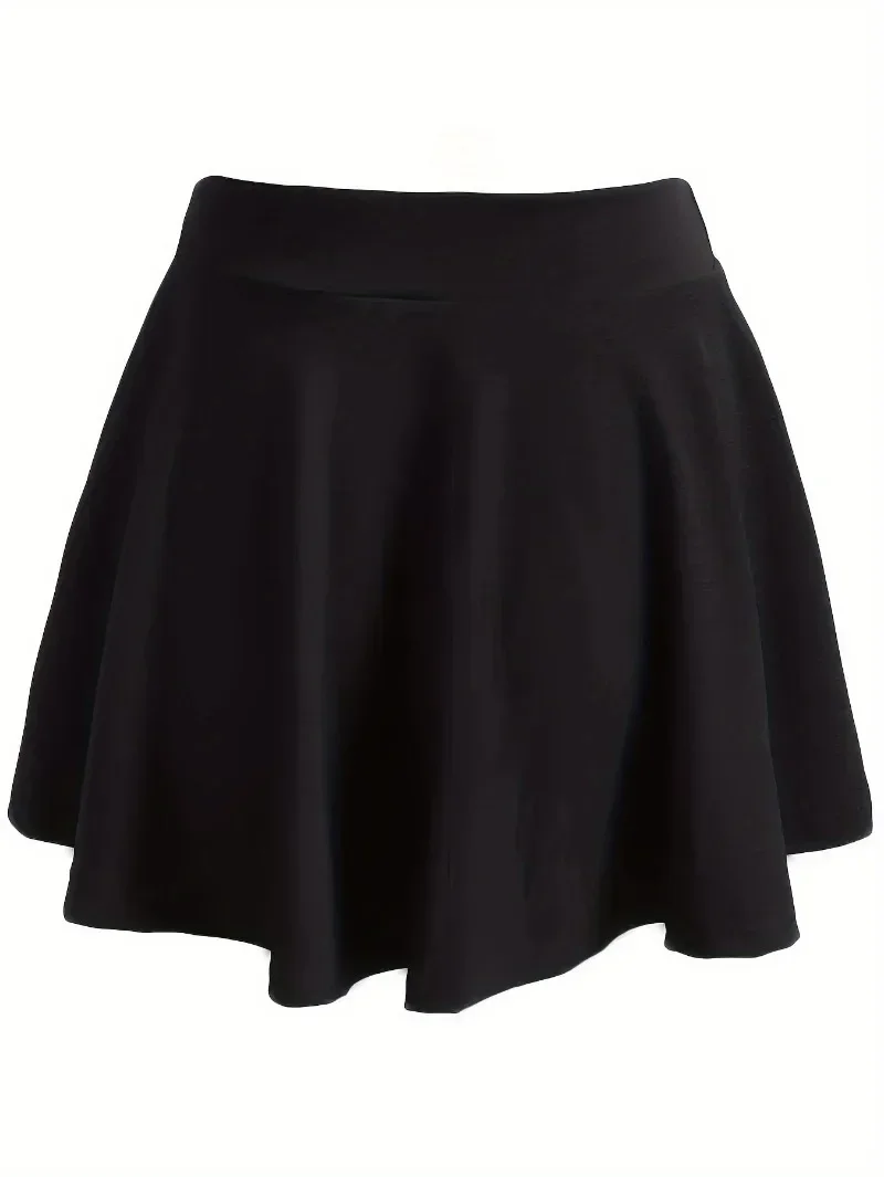 Plus Size 1XL-5XL Women’s Fashion Preppy Half Dress Ladies Solid Elastic High Rise Slight Stretch A-line Design Mini Half Dress