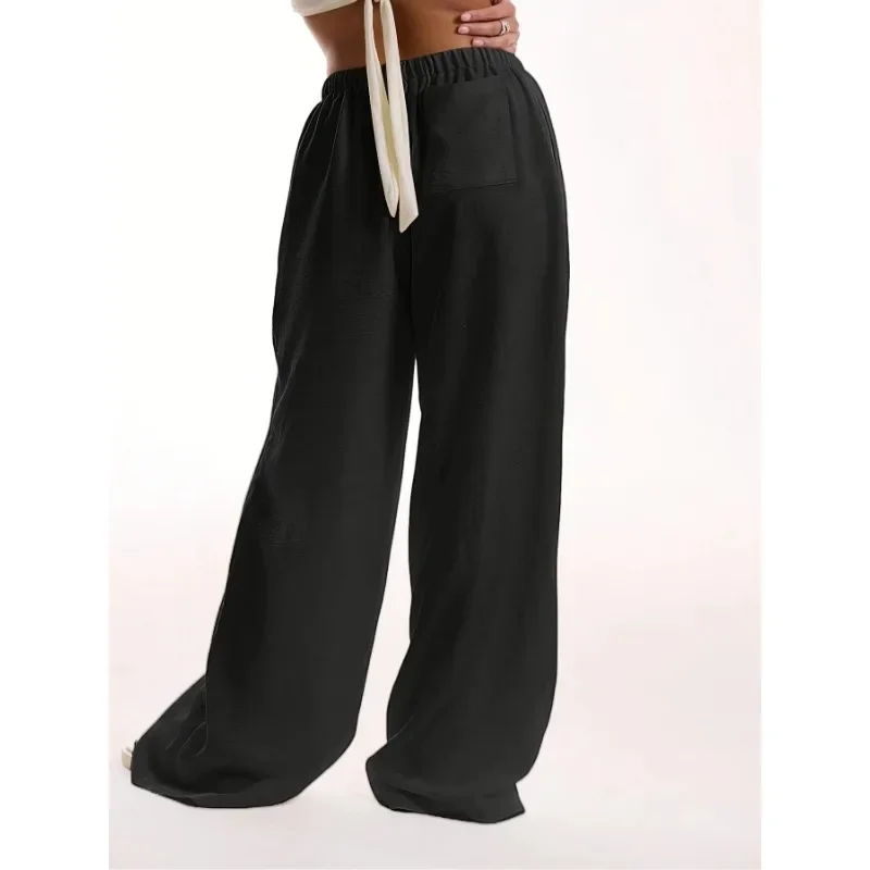 Plus Size 1XL-5XL Women’s Fashionable Solid Color Straight Tube Drawstring Elastic Waist Pants Suitable for Commuting
