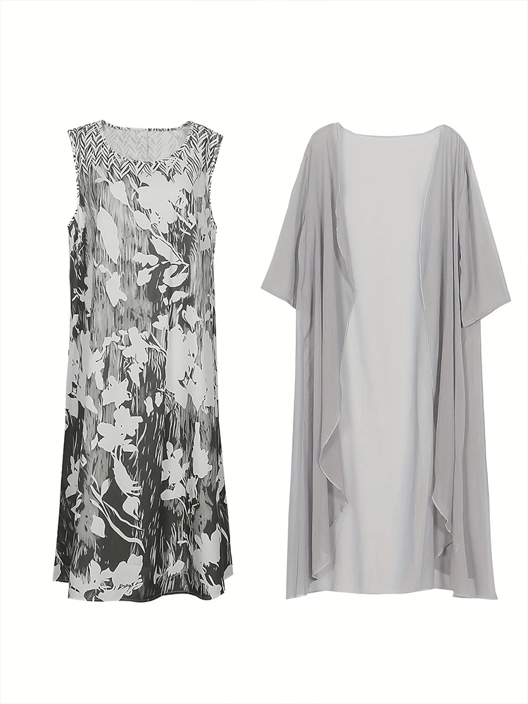 Plus Size 2025 Autumn New Women’s Floral Printed Long Dress Printed Pattern Two-piece Dress Round Neck Temperament Elegant Dress