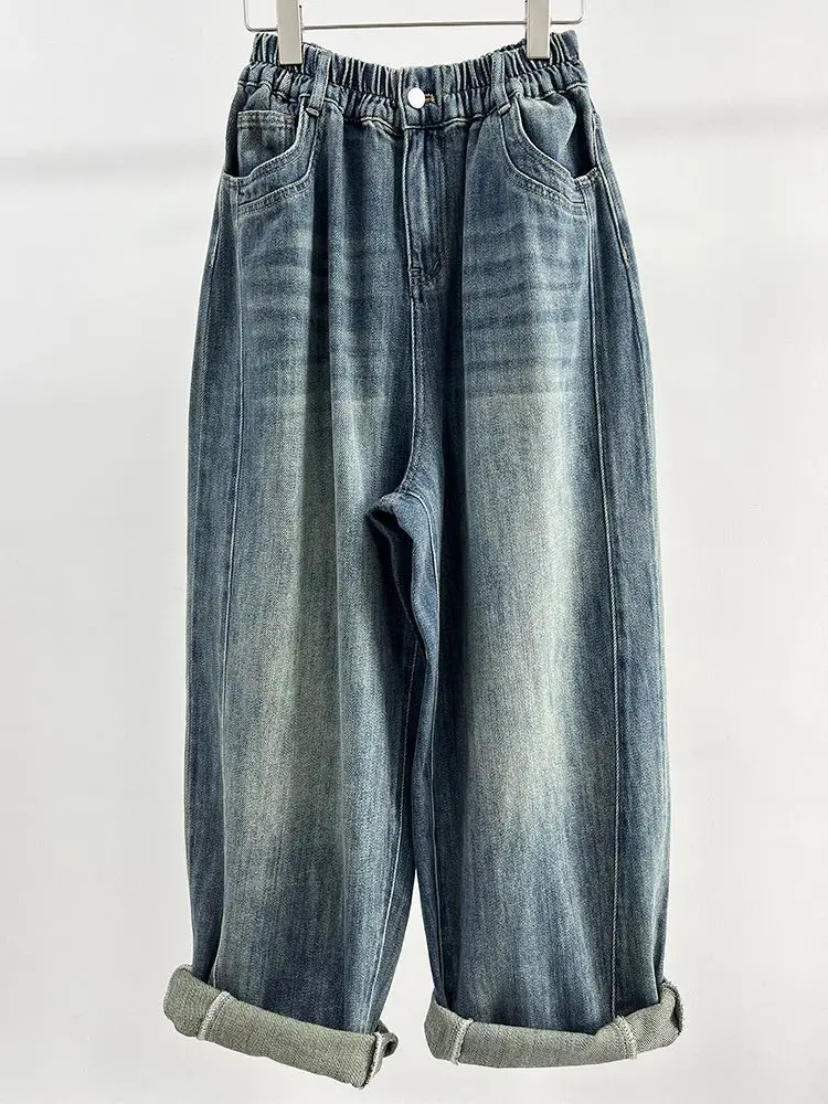 Plus Size 5XL 140kg Autumn Women Jeans Elastic Wasit Ankle Length Jeans Woman Solid Color Big size Jeans Oversized Women Clothes