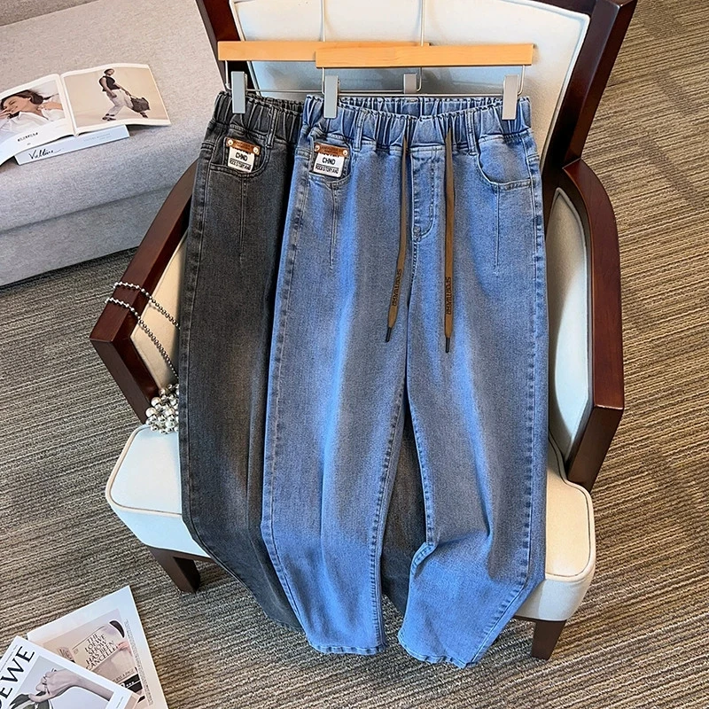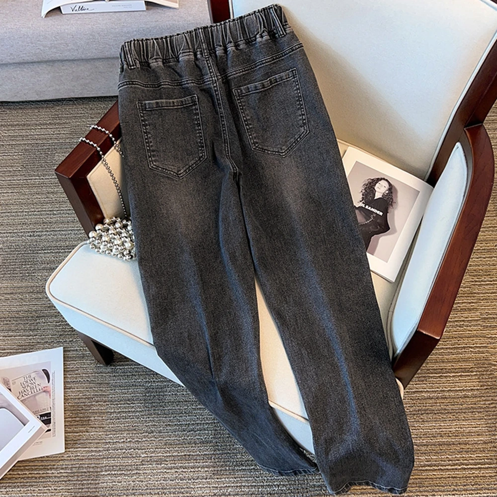 Plus Size 7XL 170kg Women Denim Pants High Elastic Waist Jeans Trousers Pockets Thin Slim Ladies Ankle Length Loose Trousers