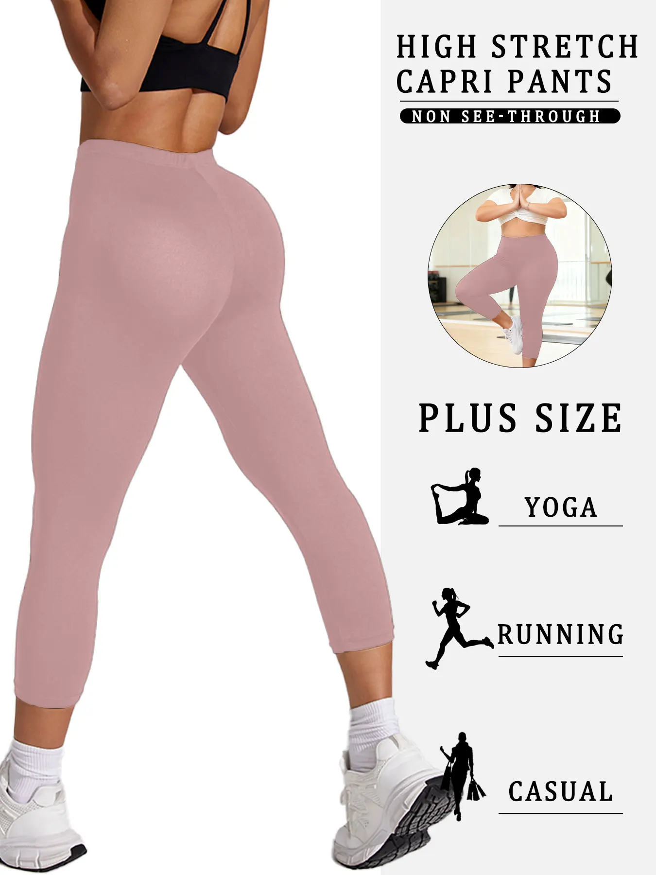 Plus Size Athletic Yoga Leggings for Women Super Soft Capri Pants No See Through Workout Running Home Casual