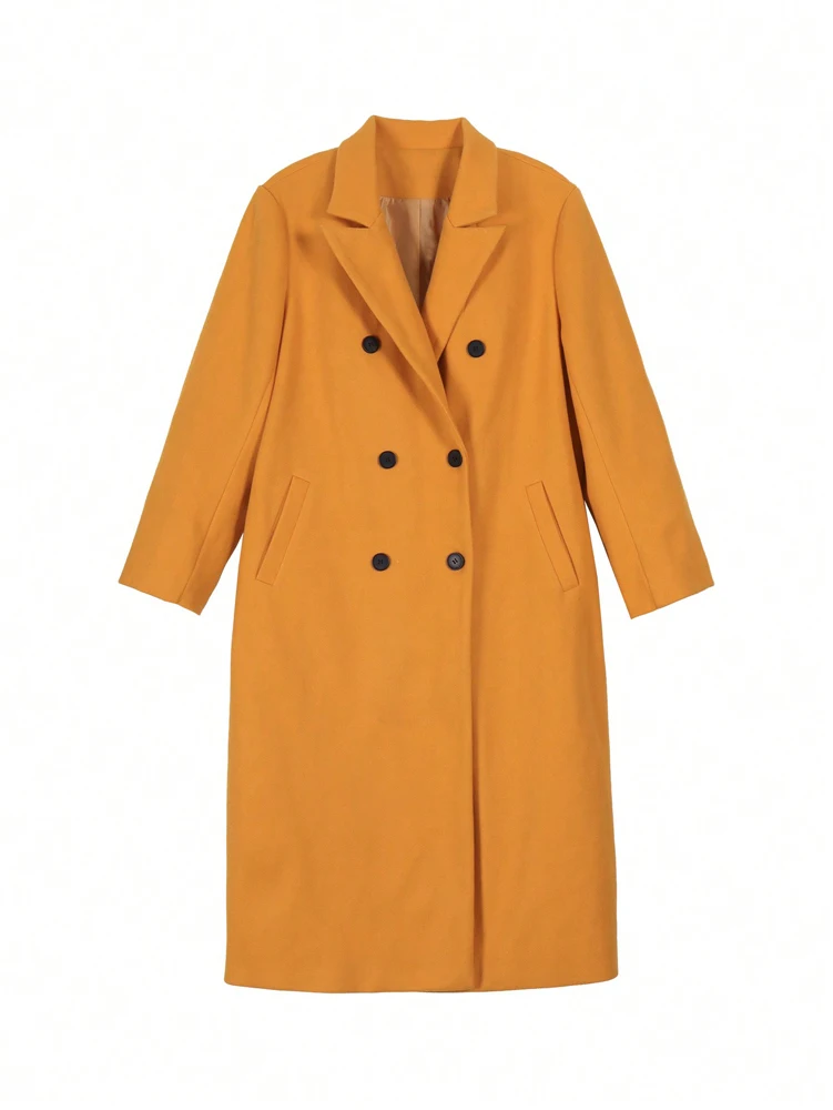Plus Size Autumn And Winter New Leisure Pure Colour Double-Breasted Jacket Ladies Temperament Elegant Daily