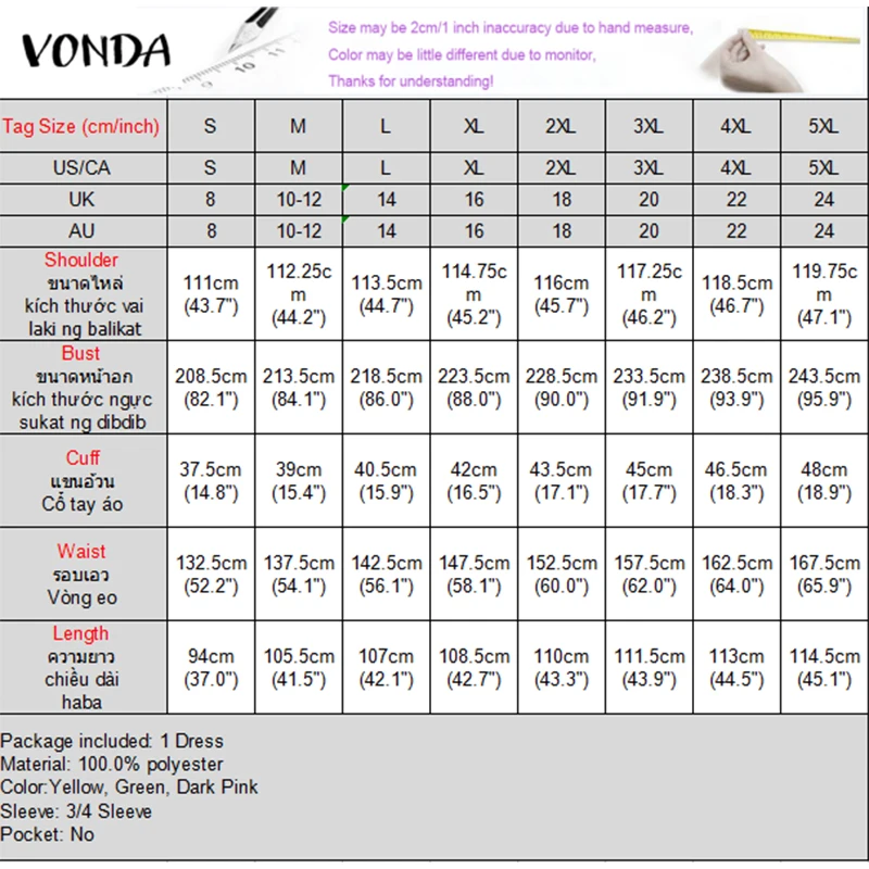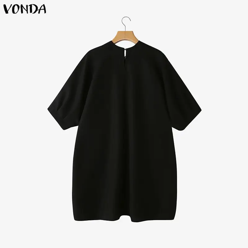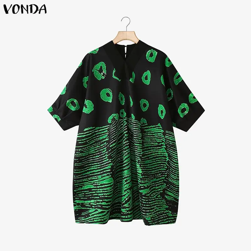 Plus Size Bohemian Vestidos 5XL VONDA Print Mini Dresses Women 3/4 Sleeve V-Neck Casual Loose Party Holiday Autumn Fashion Robe
