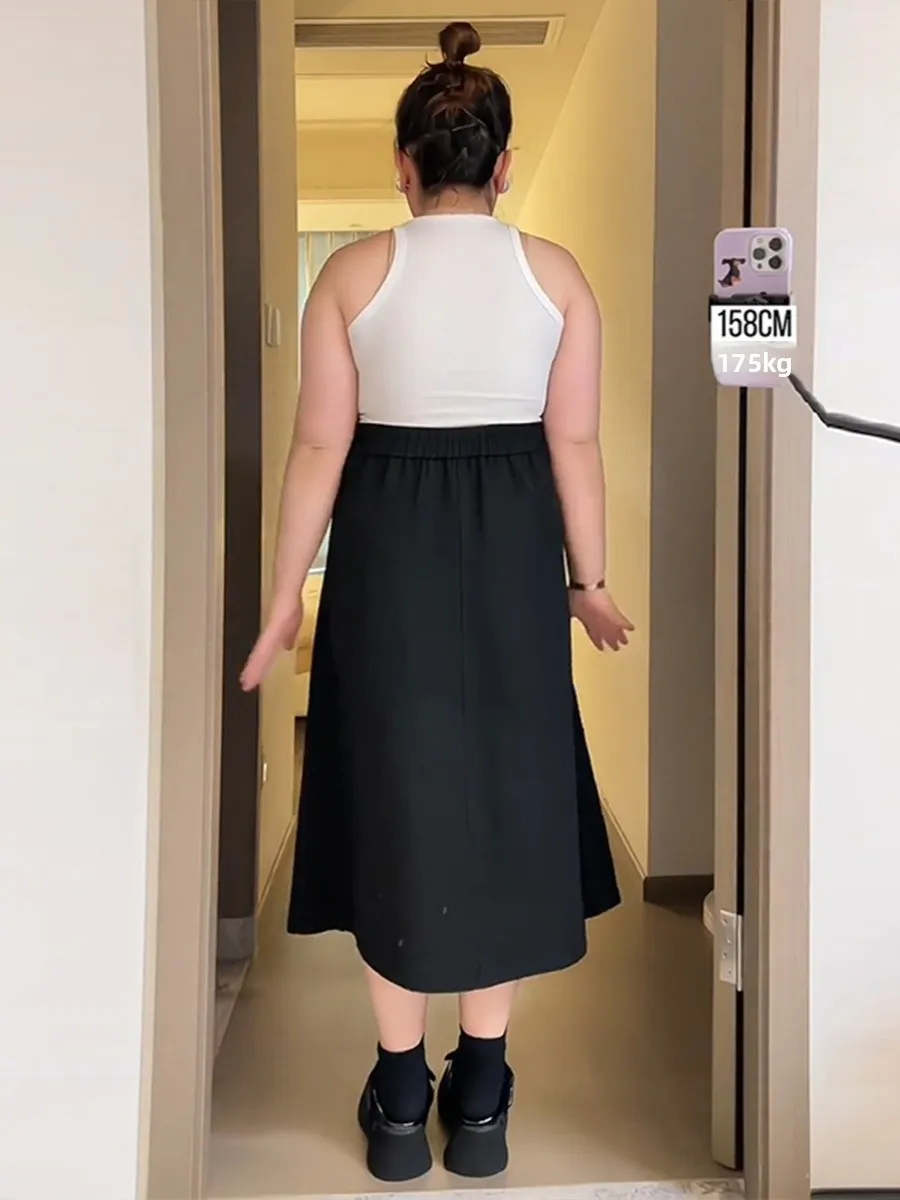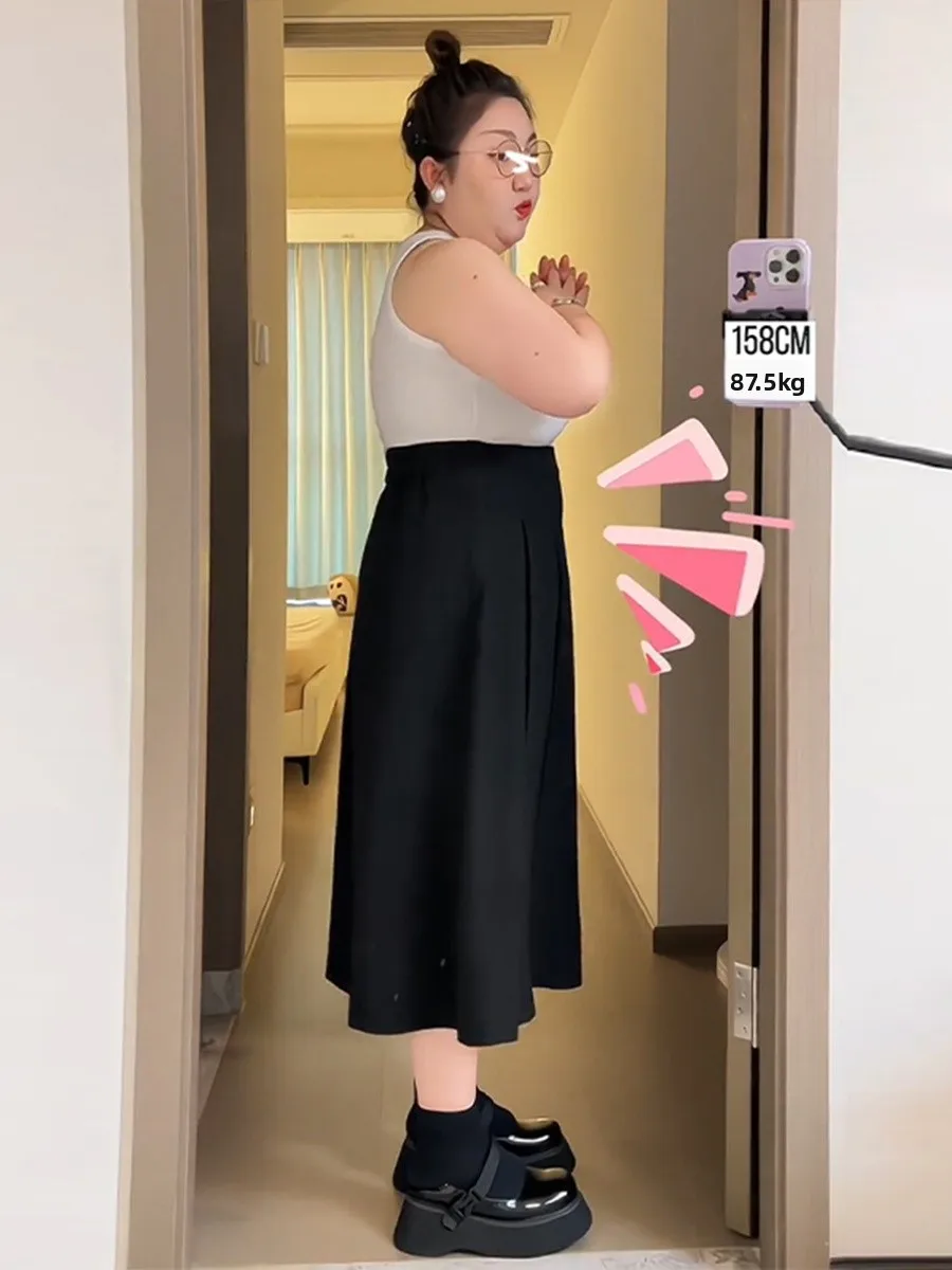 plus Size Busin Casual Midi Skirt A-Line Pleated High Waist for Pear aped Body Versatile Workwear Spring Season Color