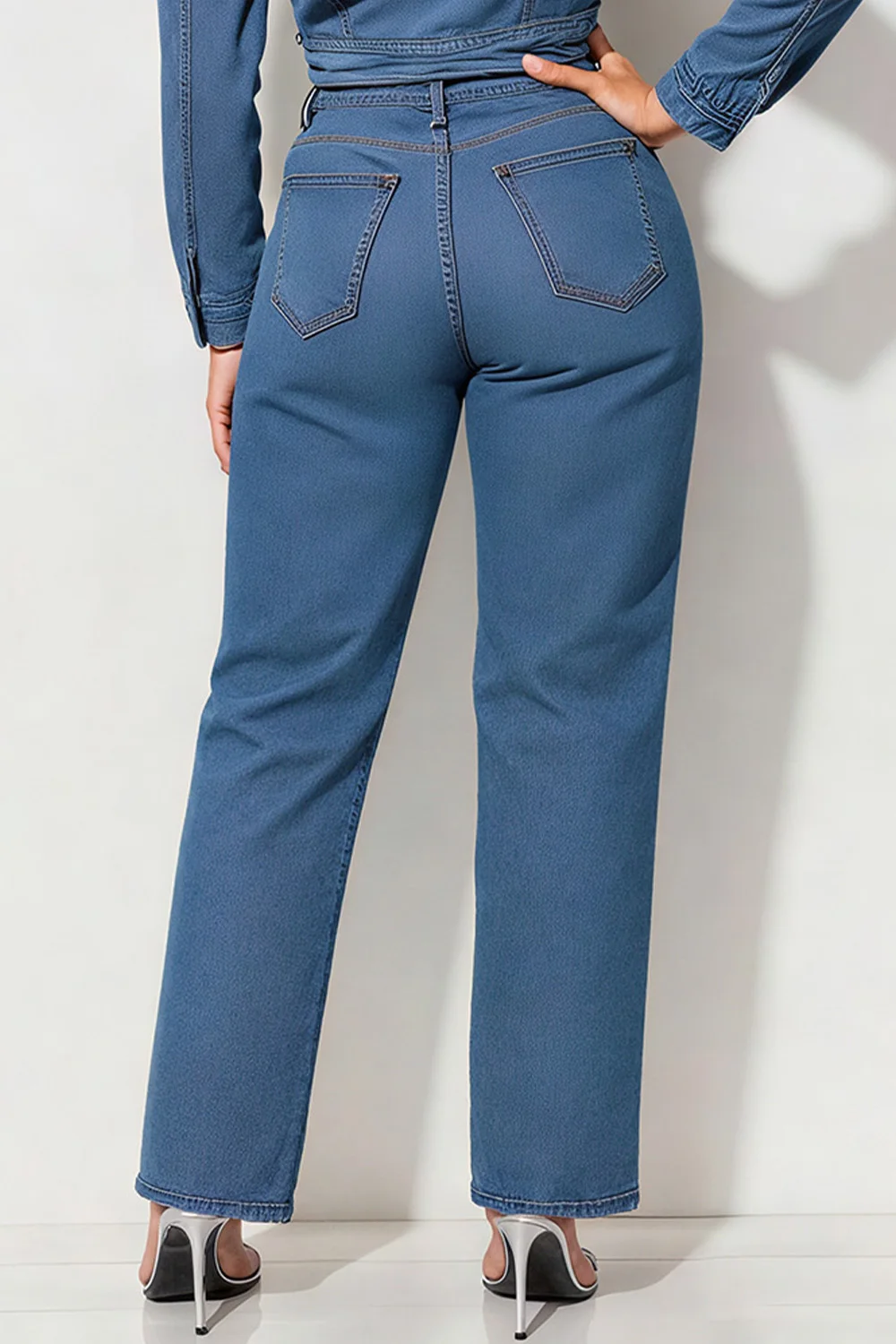 Plus Size Business Casual Blue Pocket Elegant Drilling Denim Jeans