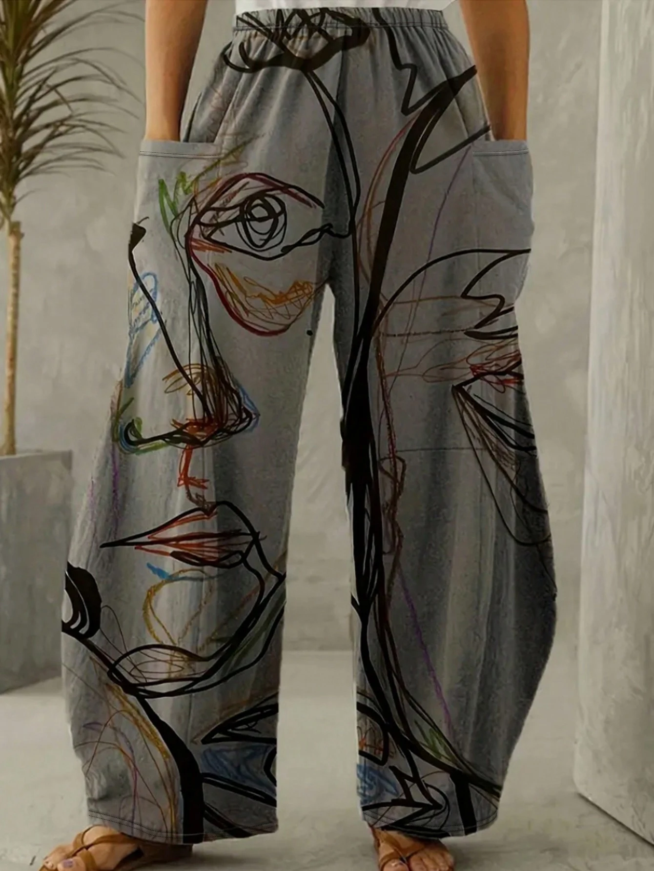 Plus Size Casual high waisted wide leg pants, loose straight leg, random printed pants, women’s pants