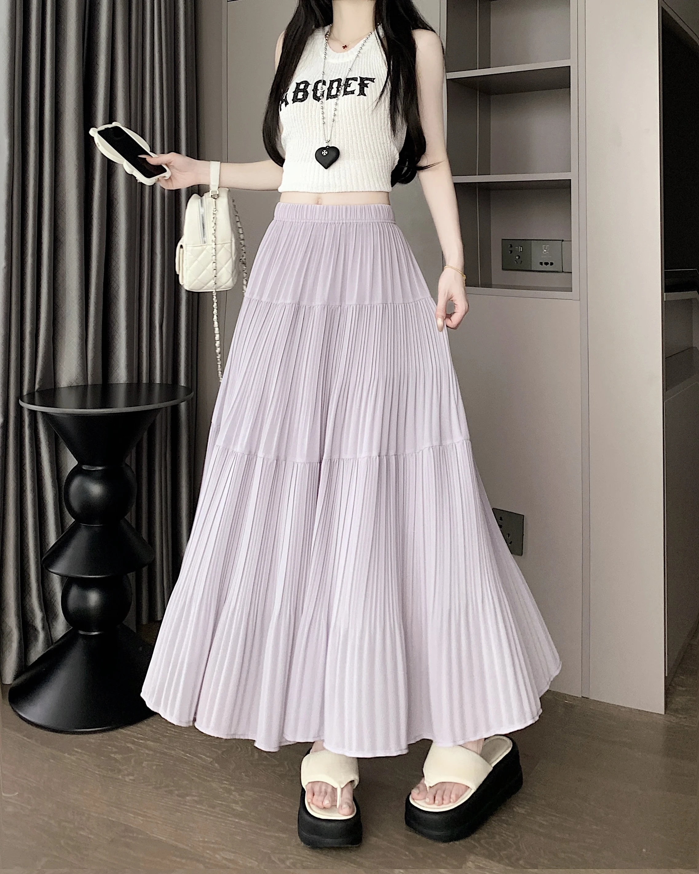Plus Size Chiffon Skirt For Women Summer Skirt 2025 New Arrival High Elastic Waist Pleated A Line Long Skirt Large Size Skirts