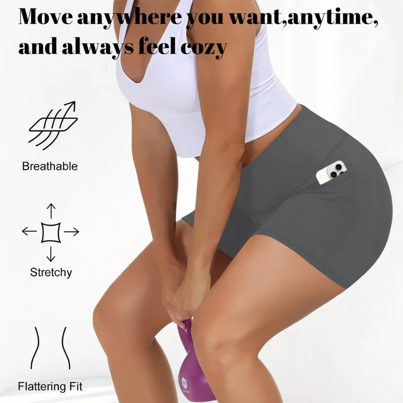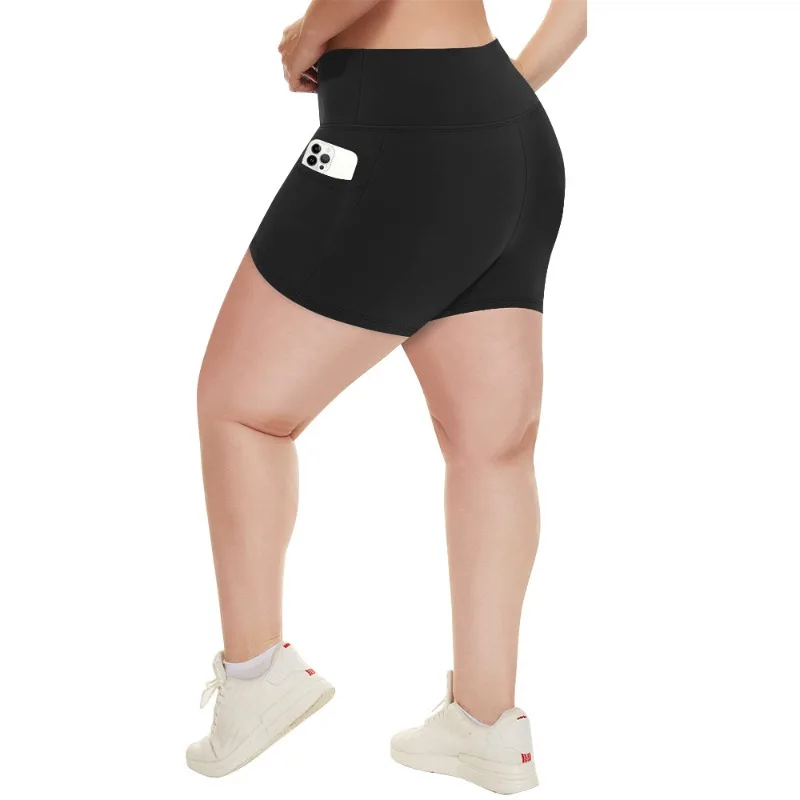 Plus Size Fit Yoga Shorts for Women’s High Waist Side Pocket Workout Running Tight Stretchy Athletic Summer Fashion Slim Shorts