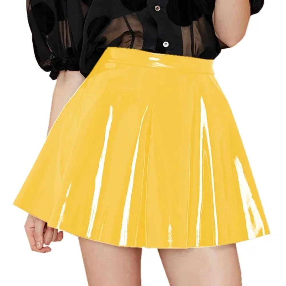 Plus Size Glossy PU Mini Pleated Skirt Women High Waist Sexy Short Skirts High Street A-line Swing Skirts Wetlook Club Clothing