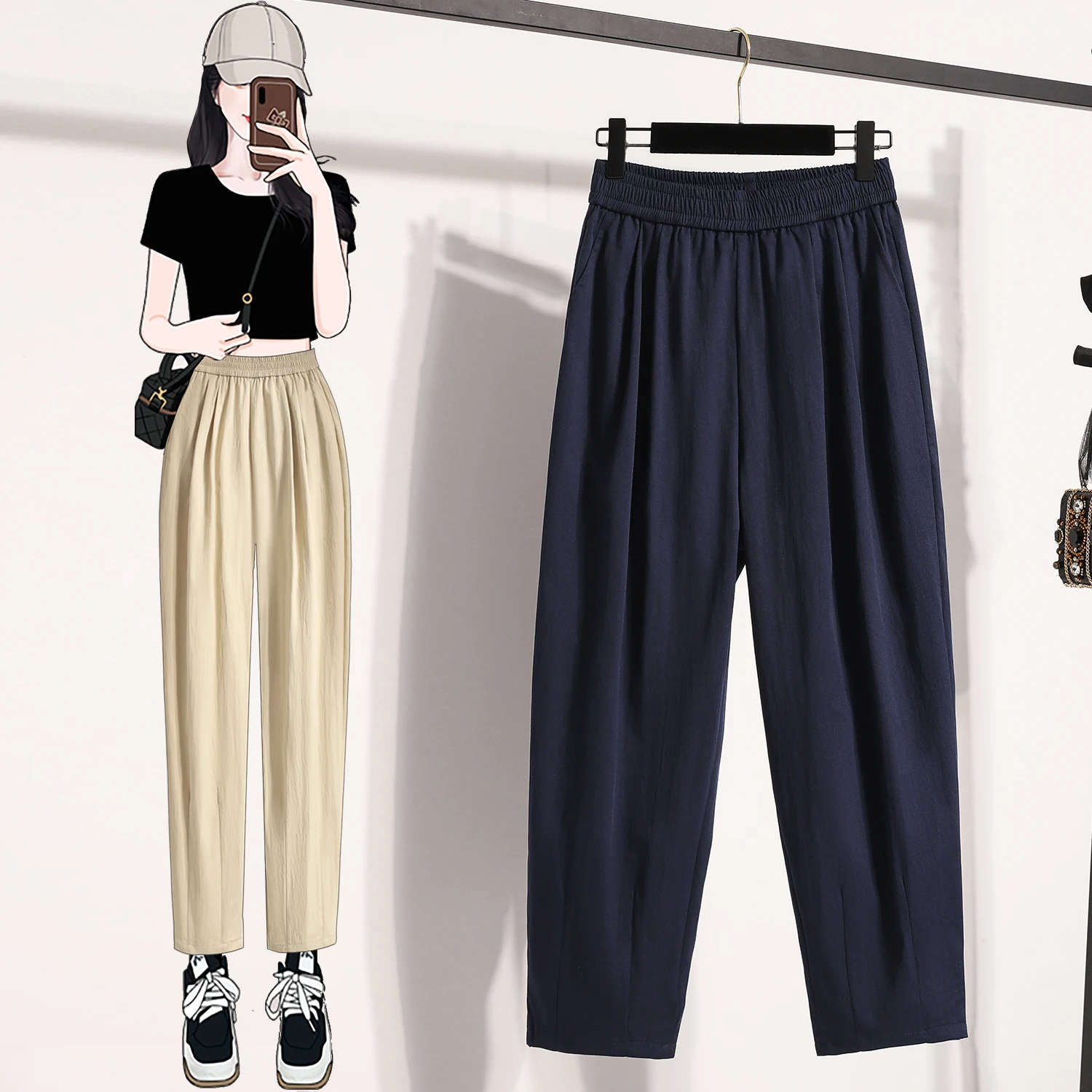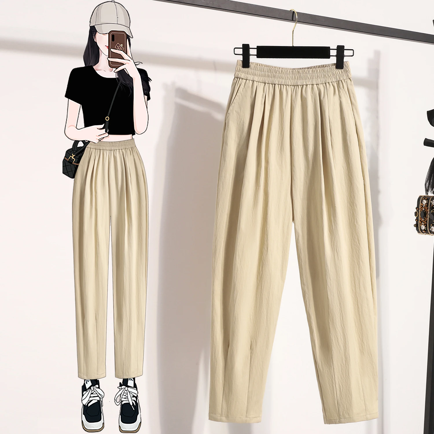 Plus Size Harem Pants Women Summer 2025 New High Elastic Waist Wide Leg Loose Linen Pants Female Thin Casual Trousers Women