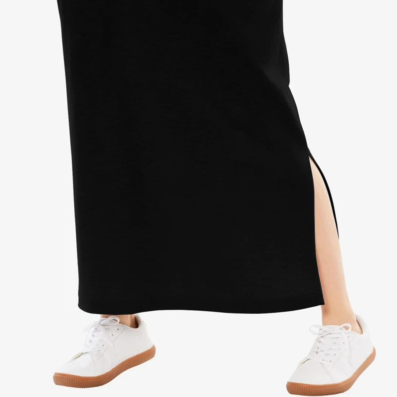 Plus Size Knot Drawstring Waist Summer Spring Long Skirt Women Elastic Waist Slit Pocket Sides Black Casual Sports Skirt 6XL 7XL