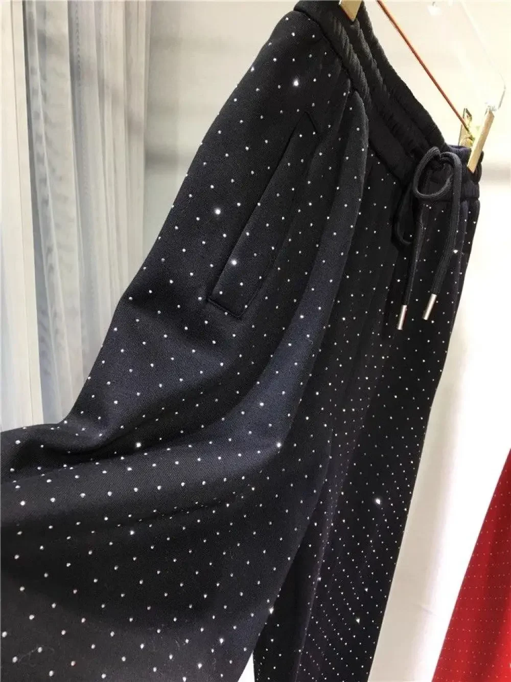 Plus Size L-4XL 150KG Women’s Fleece Sweatpants 2024 New Red Diamond Stamping Harem Pants Autumn/winter Casual Female Trousers