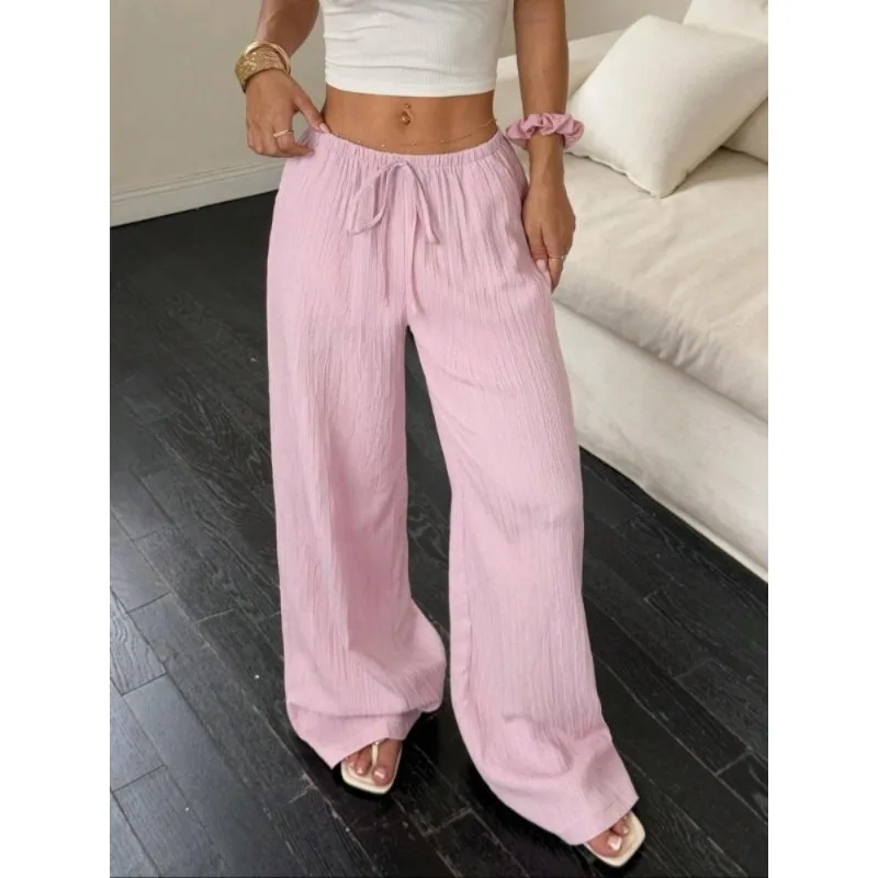 Plus Size New Women Trousers Streetwear Fashion Casual Slim Lace-up Pink Sweet Trousers Elegant Female Trousers