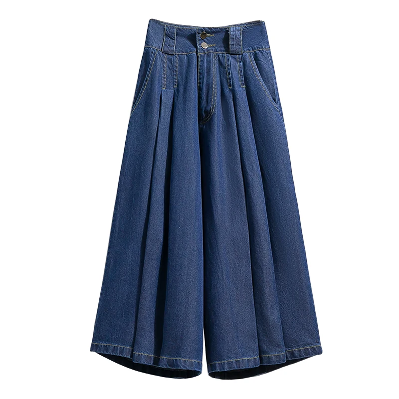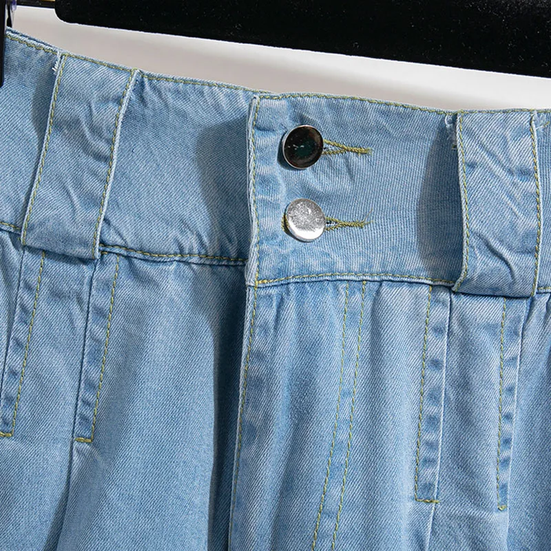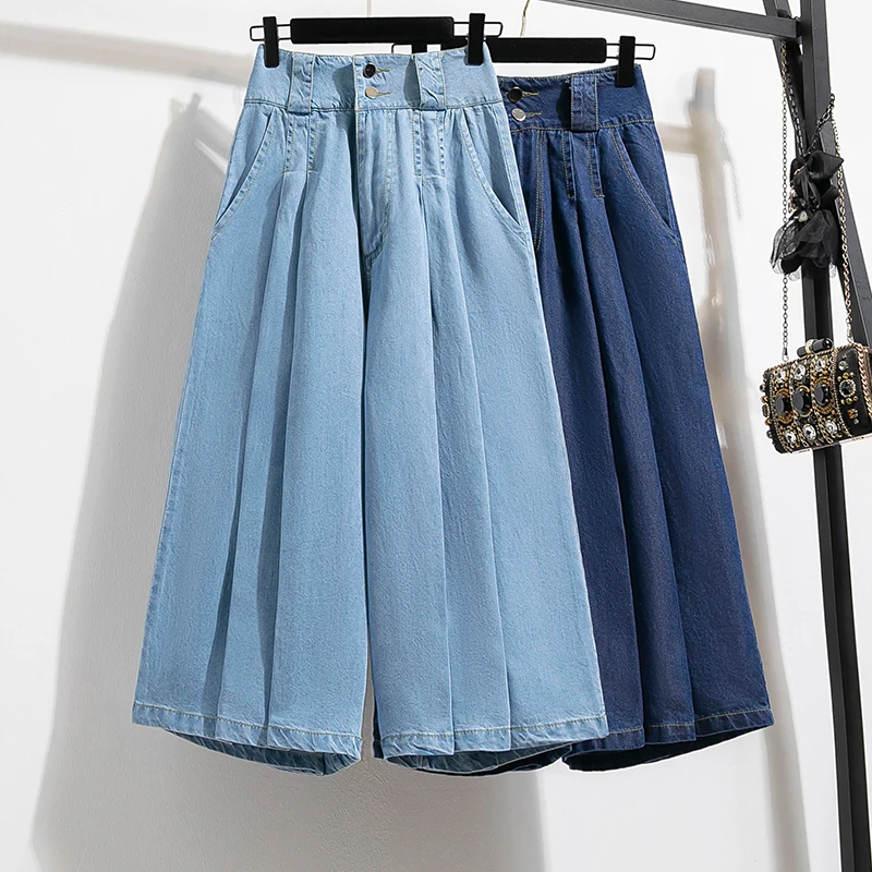 Plus Size Pants For Women 2025 Summer New High Waist Denim Pants Women Korean Style Wide Leg Loose Large Size Jeans Women