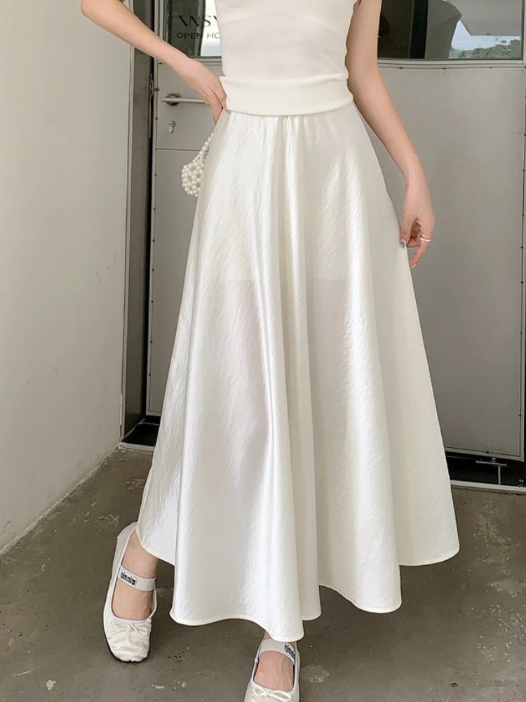 Plus Size Satin Half-Body Skirt Female 2026 Spring New Korean Fashion Temperament Elegant Solid Casual A-line Skirts