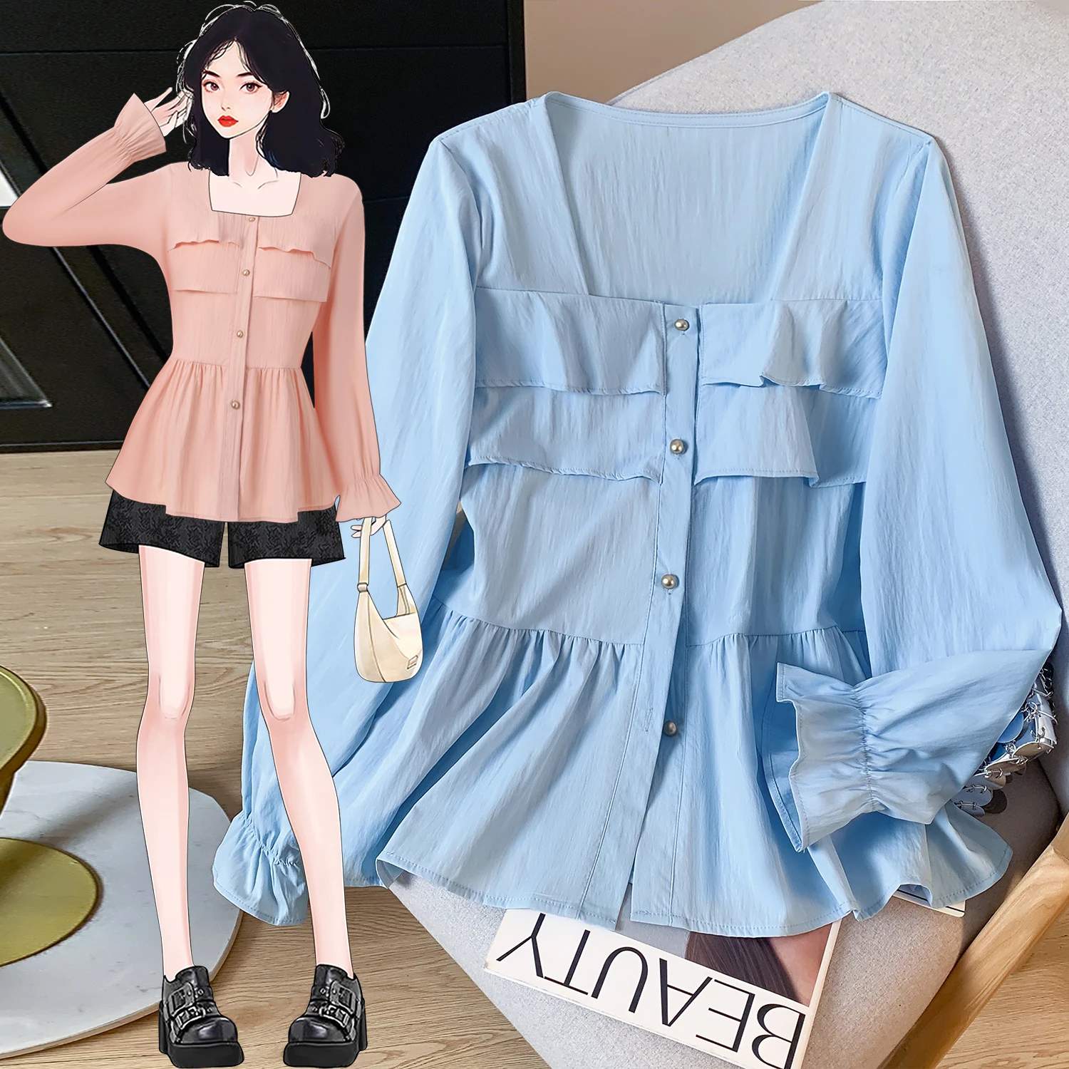 Plus Size Shirt For Woman Clothing Spring Summer 2025 New Arrivals Long Sleeve Tops Elegant Square Collar Ruffles Shirts Blouses