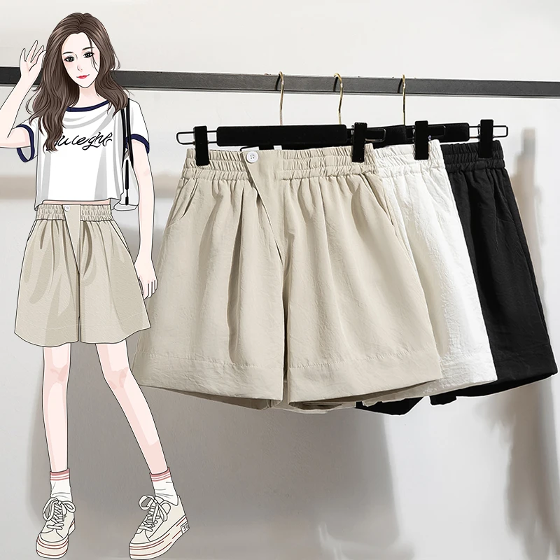 Plus Size Summer Shorts For Women 2025 Korean Style High Elastic Waist Mini Shorts Women Wide Leg Loose Shorts Female