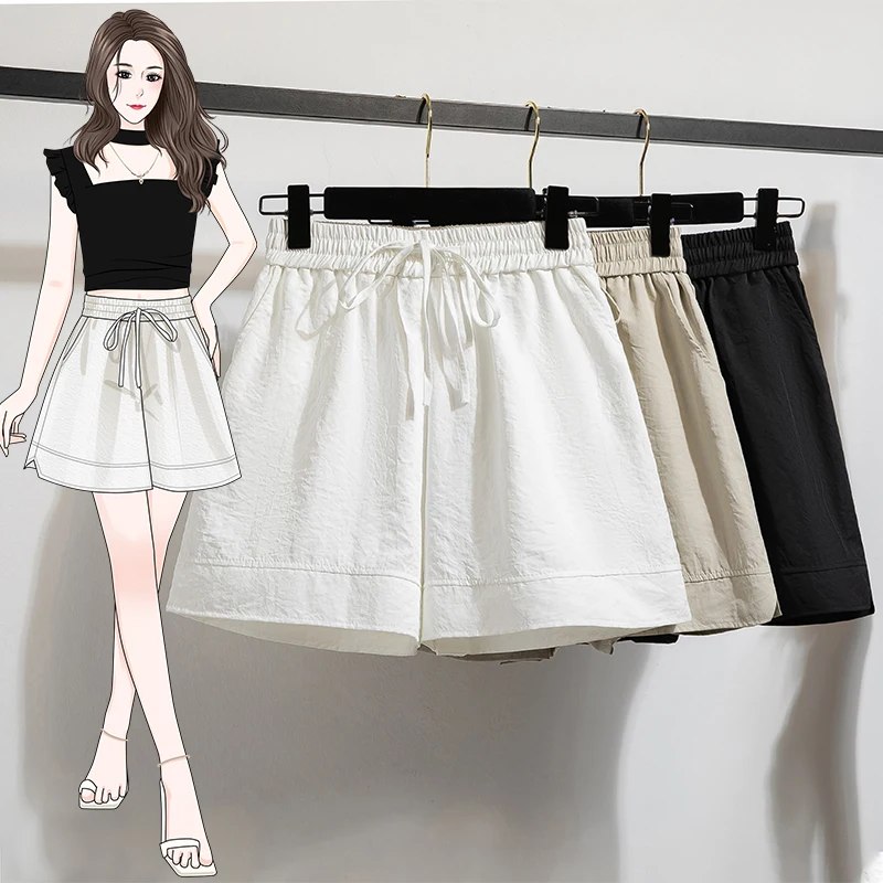 Plus Size Summer Shorts For Women 2025 Summer Ice Silk Drawstring Large Size Loose Shorts Women Korean Streetwear Shorts Female