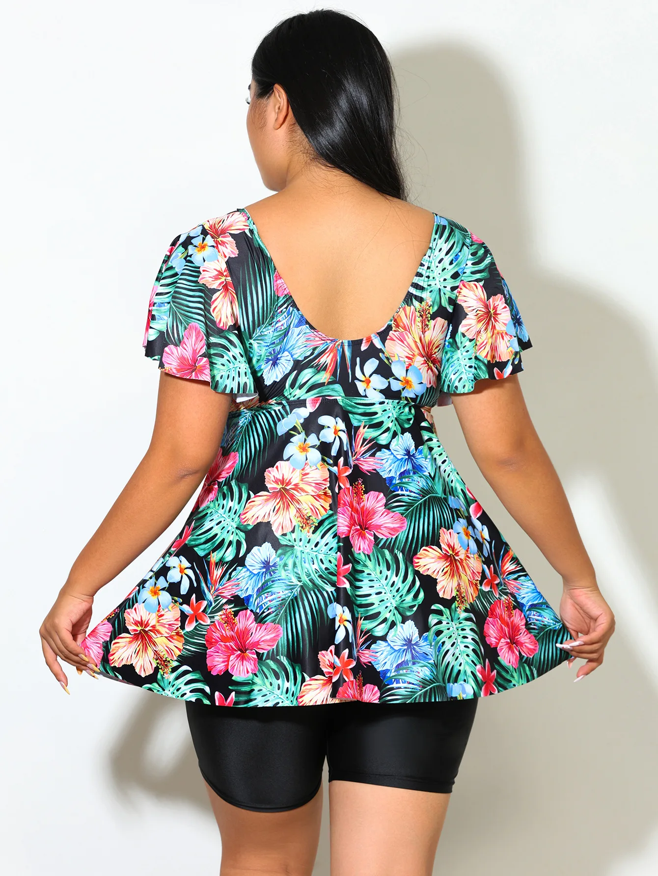 Plus Size Two Piece Tankini Swimsuits For Women Printed Swim Top High Waist Shorts Tummy Control Bathing Suits