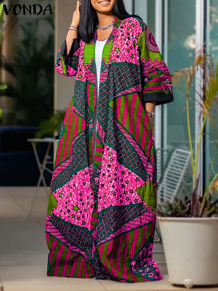 Plus Size VONDA Women Long Shirts 2024 Bohemian Cover-ups Blouse Printed Long Sleeve Cardigans Casual Loose Elegant Cardigans