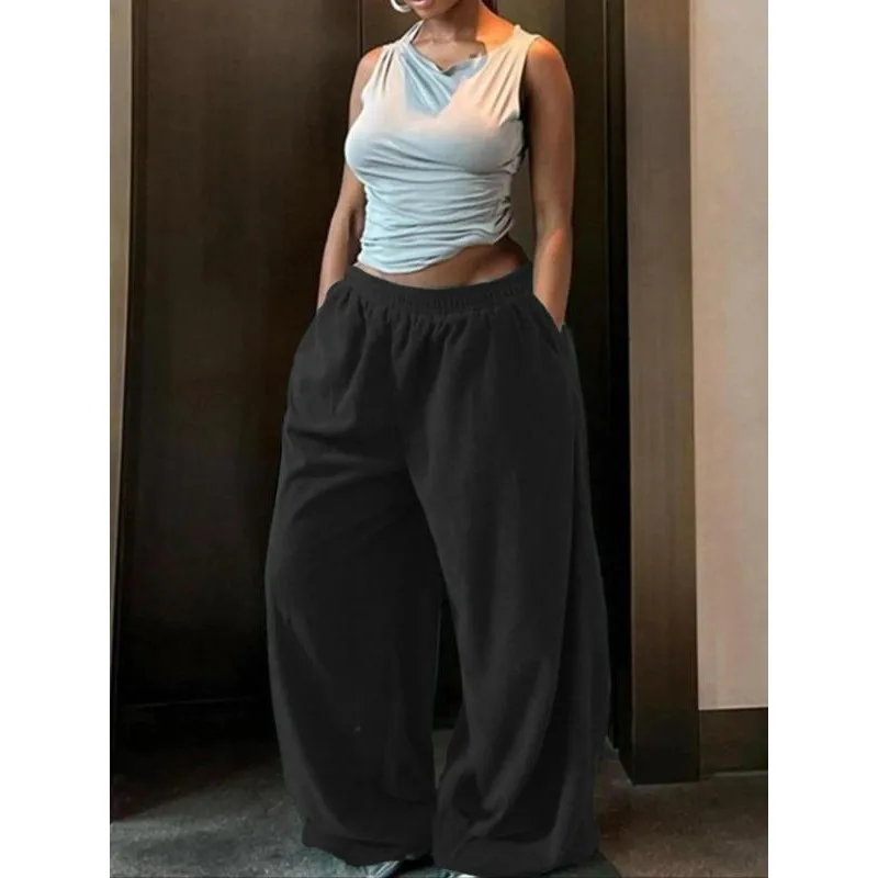 Plus Size Women Fashion Trousers New Streetwear Basic Straight Casual Slim Pants Lady Sexy Solid Simple Knitted Trousers