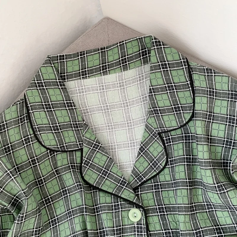 Plus Size Women Plaid Pajamas Set Kawaii Homewear Long Sleeve Two Piece Pajama Set Loose Sleepwear Outfit New Year Gift