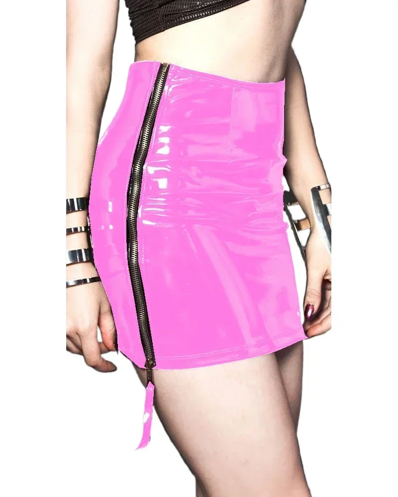 Plus Size Women Skirts High Waist Side Zipper Mini Skirts PVC Leather Sexy Pencil Short Skirts Revelry Party Stretch Slim Skirt