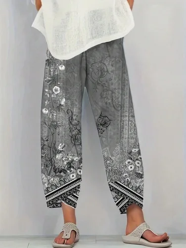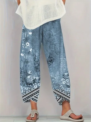 Plus Size Women Summer Casual vacation loose print pants Comfortable and Soft Trousers