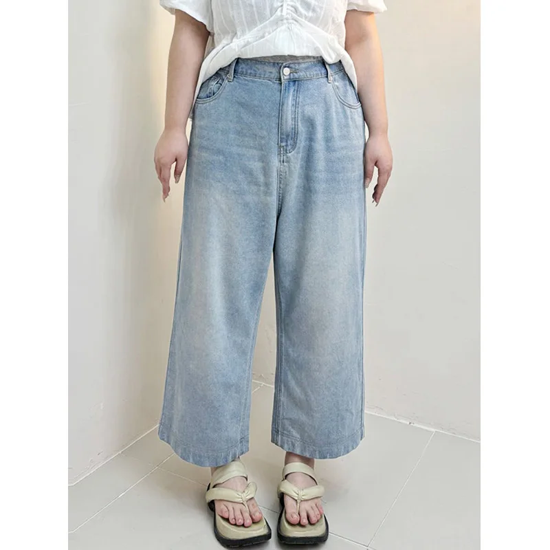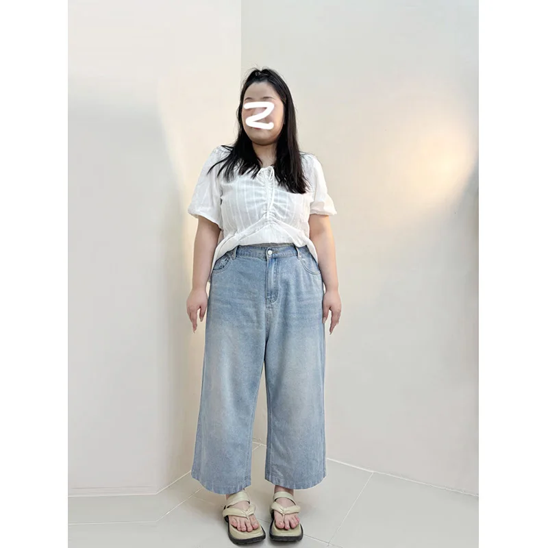 plus Size Women’s Cropped Wide-Legged Jeans Summer High Waist Slimming Loose Fashion VersatileFashion Pants3393
