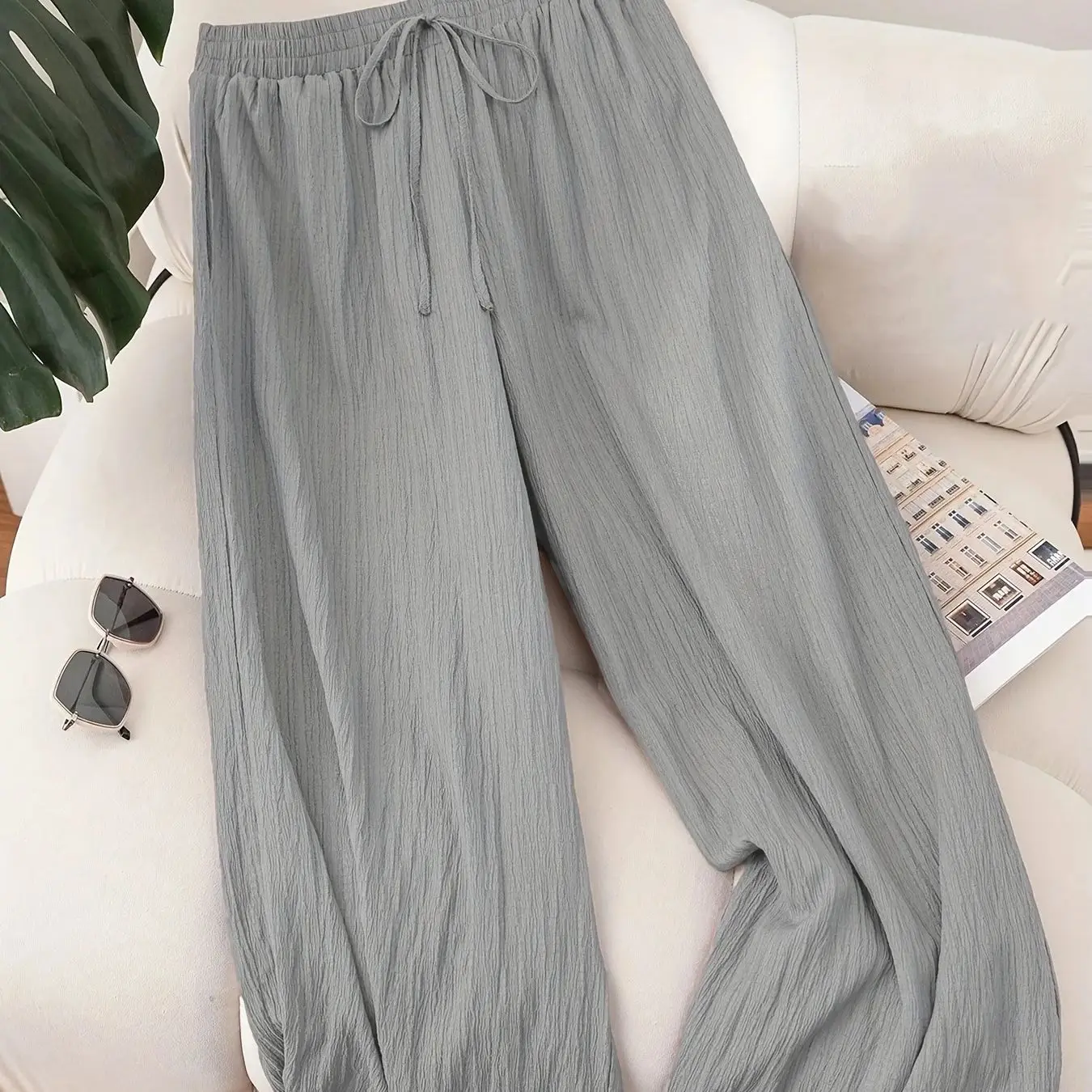 Plus Size Women’s Elastic Waist Loose Fit Lightweight Casual Pants Comfortable Relaxed Style Versatile Everyday Wear