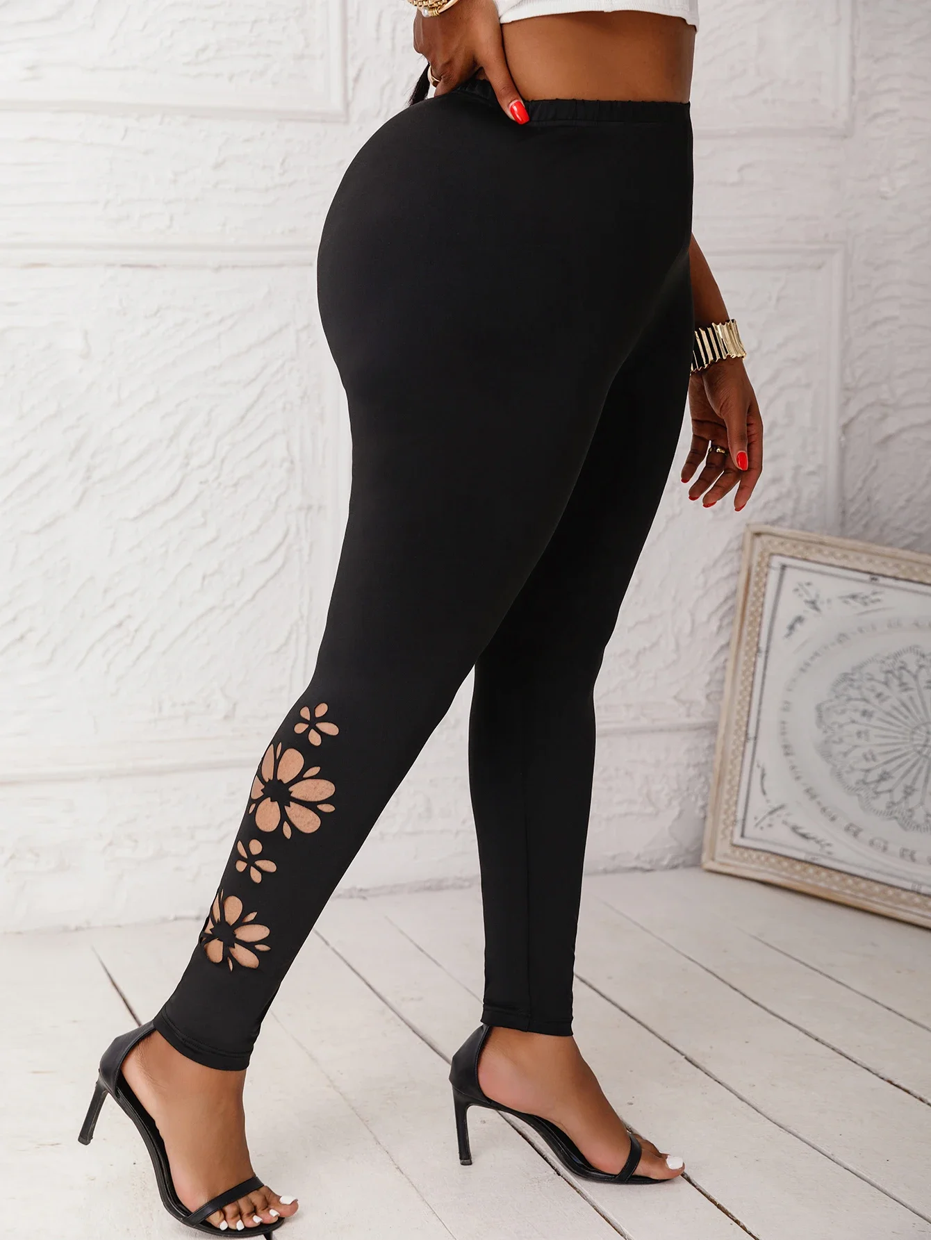 Introducing our Plus Size Women’s Floral Hollow-Out Leggings – a blend of comfort and style.