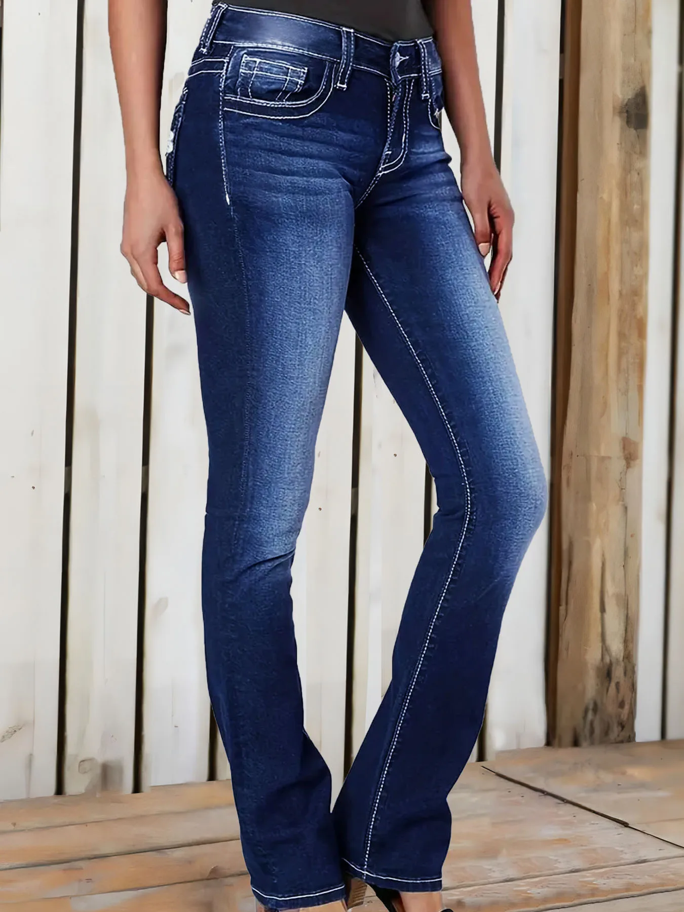 Embrace retro vibes in these flared jeans, perfect for a casual daily or campus look.