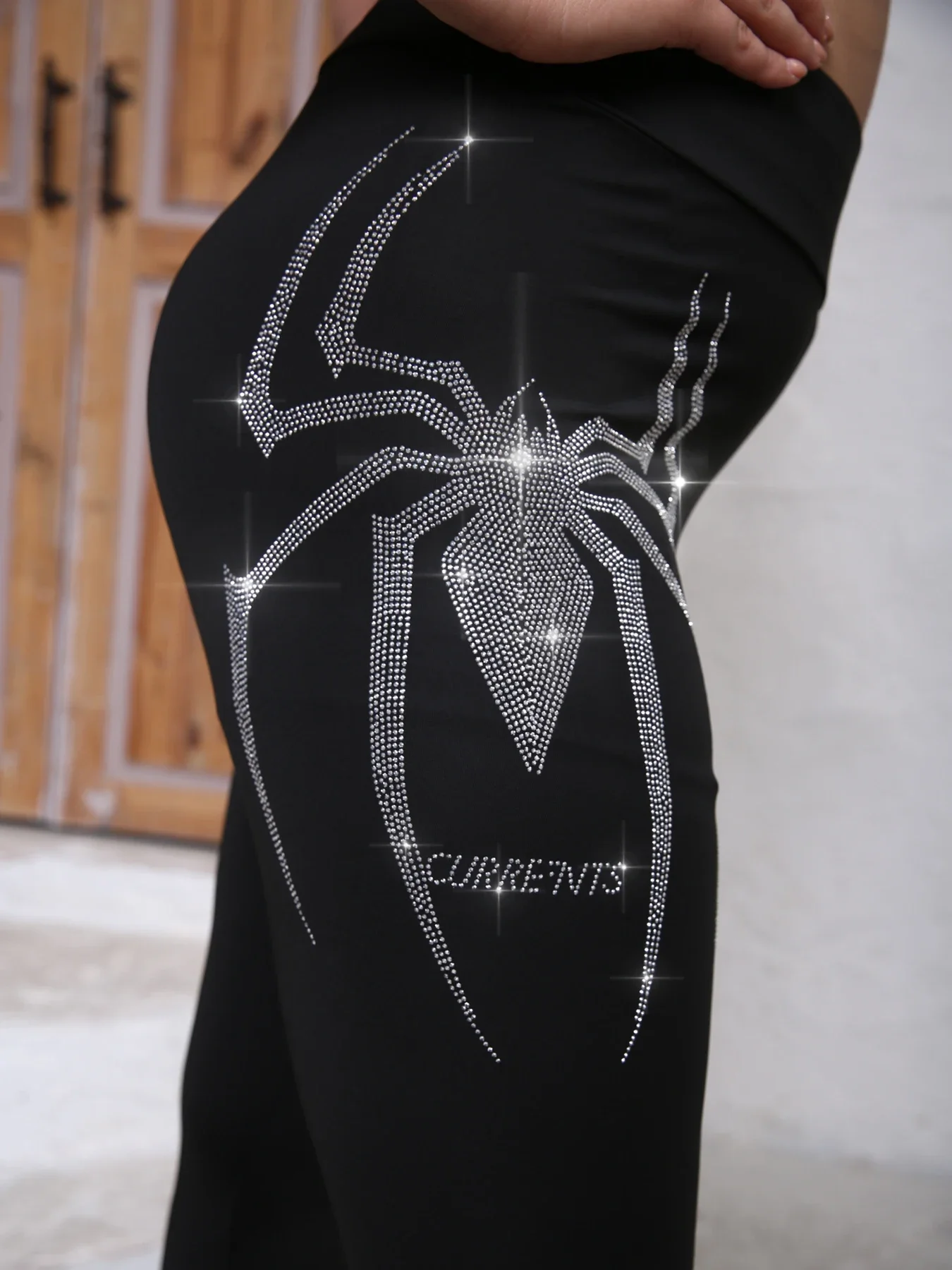 Plus Size Women’s Rhinestone Spider Pattern Leggings Comfortable High-Stretch Knit Pants Fashionable Casual Style Trousers