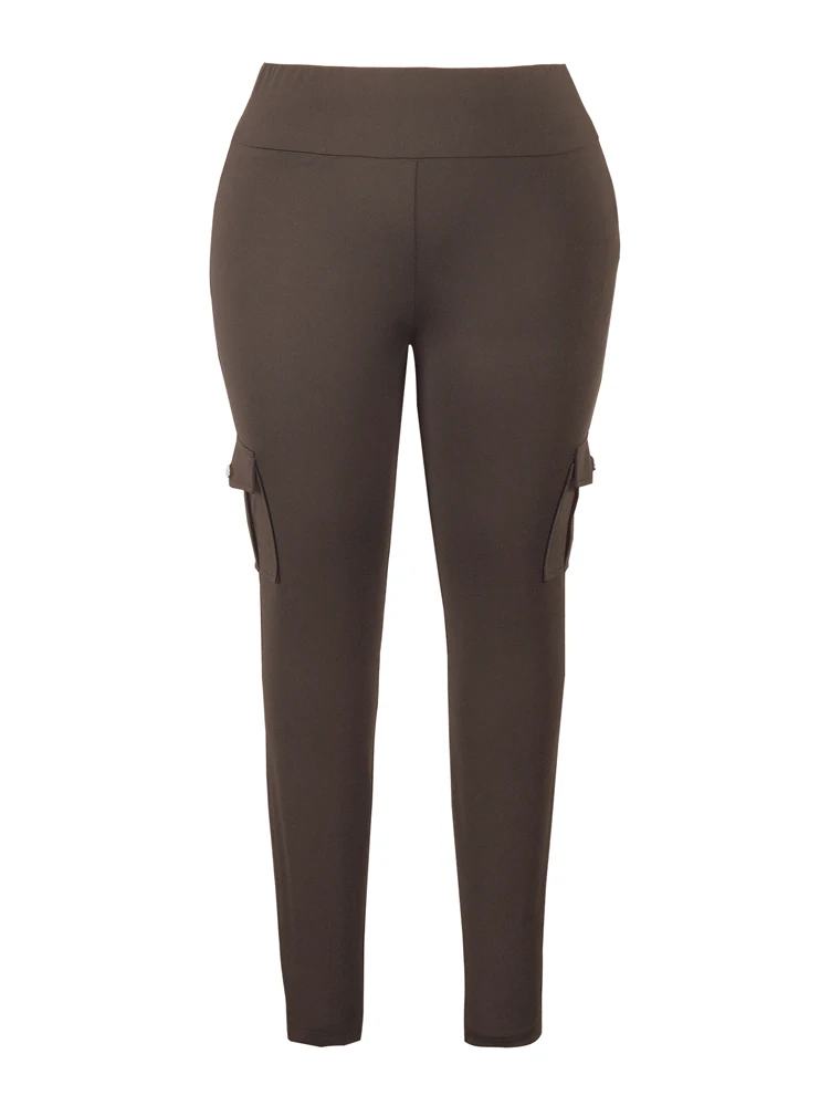 Plus Size Women’s Solid Colour Multi Pockets Casual Skinny Trousers For All Season, Everyday, Travelling