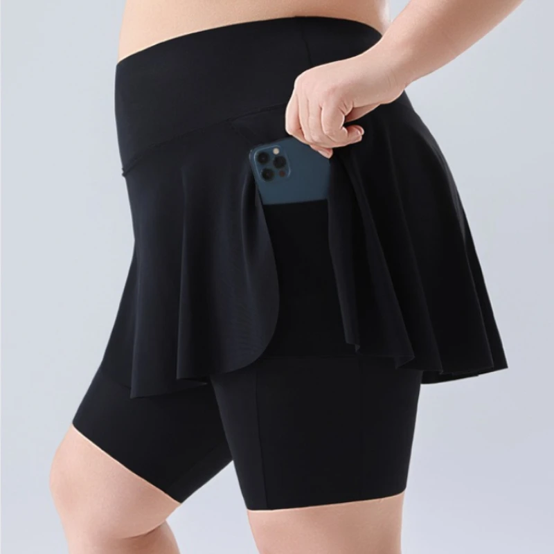 Plus Size Yoga Skorts Women High Waisted Two Piece Look Skirt with Pockets Built in Shorts for Tennis Workout Resort Wear