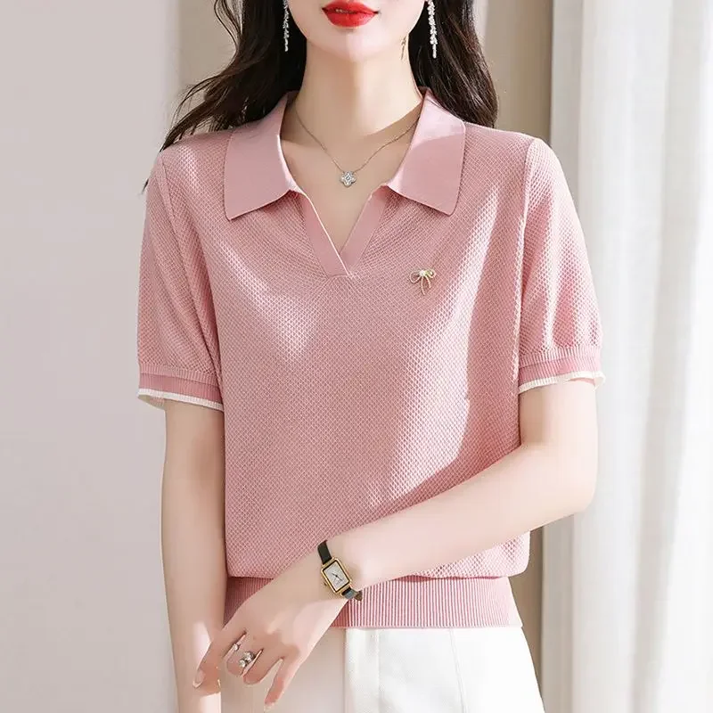 Polo Neck Shirt for Women Cute Plain Kawaii Baggy Red Woman T Korean Clothing Synthetic Luxury Fashion 2025 Pretty in Trend New
