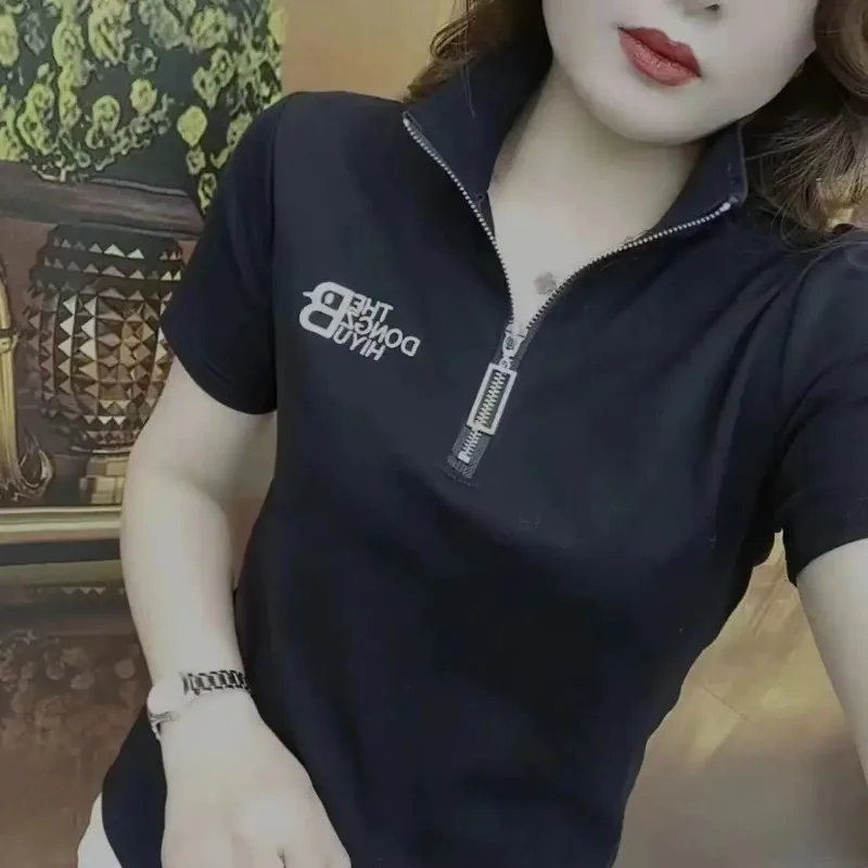 Polo Neck Shirt for Women Graphic Plain Slim Woman T Summer 2025 Korean Popular Clothes Pulovers with Collar Youthful Elegant