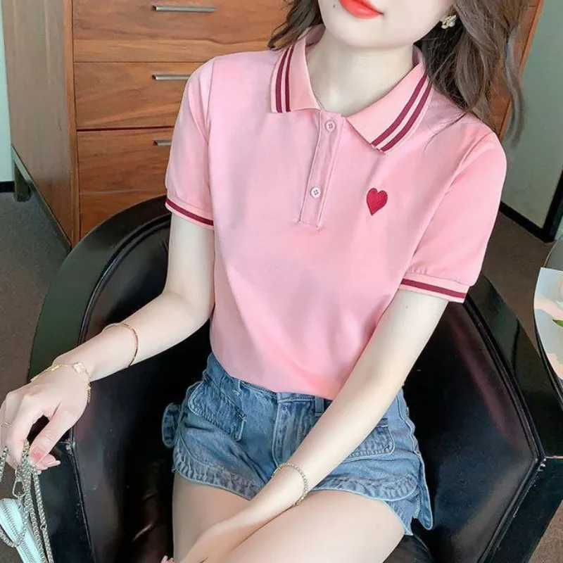 1 review for Polo Neck Shirt for Women100℅ Cotton Woman T Embroidery Button Graphic Slim Korean Clothing Trend 2025 Youthful Elegant Style