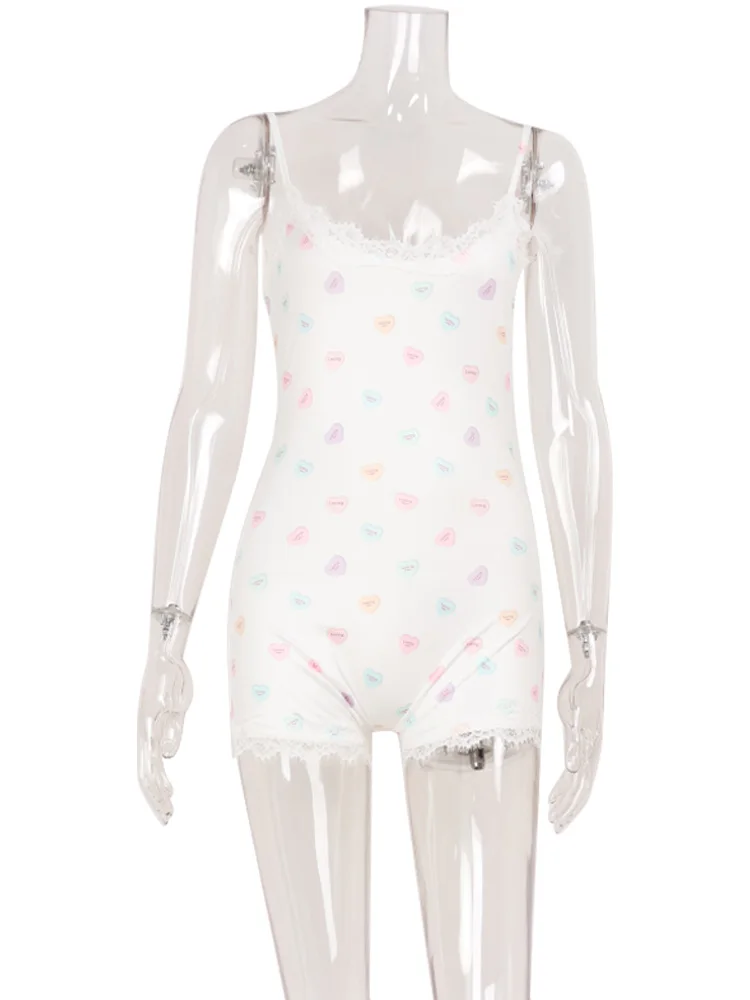 Printed Playsuits For Women Fashion Sexy Cute Lace Sleeveless Slash Neck Sheath Bodycone Sleepwear Romper Female Slim Fit Casual