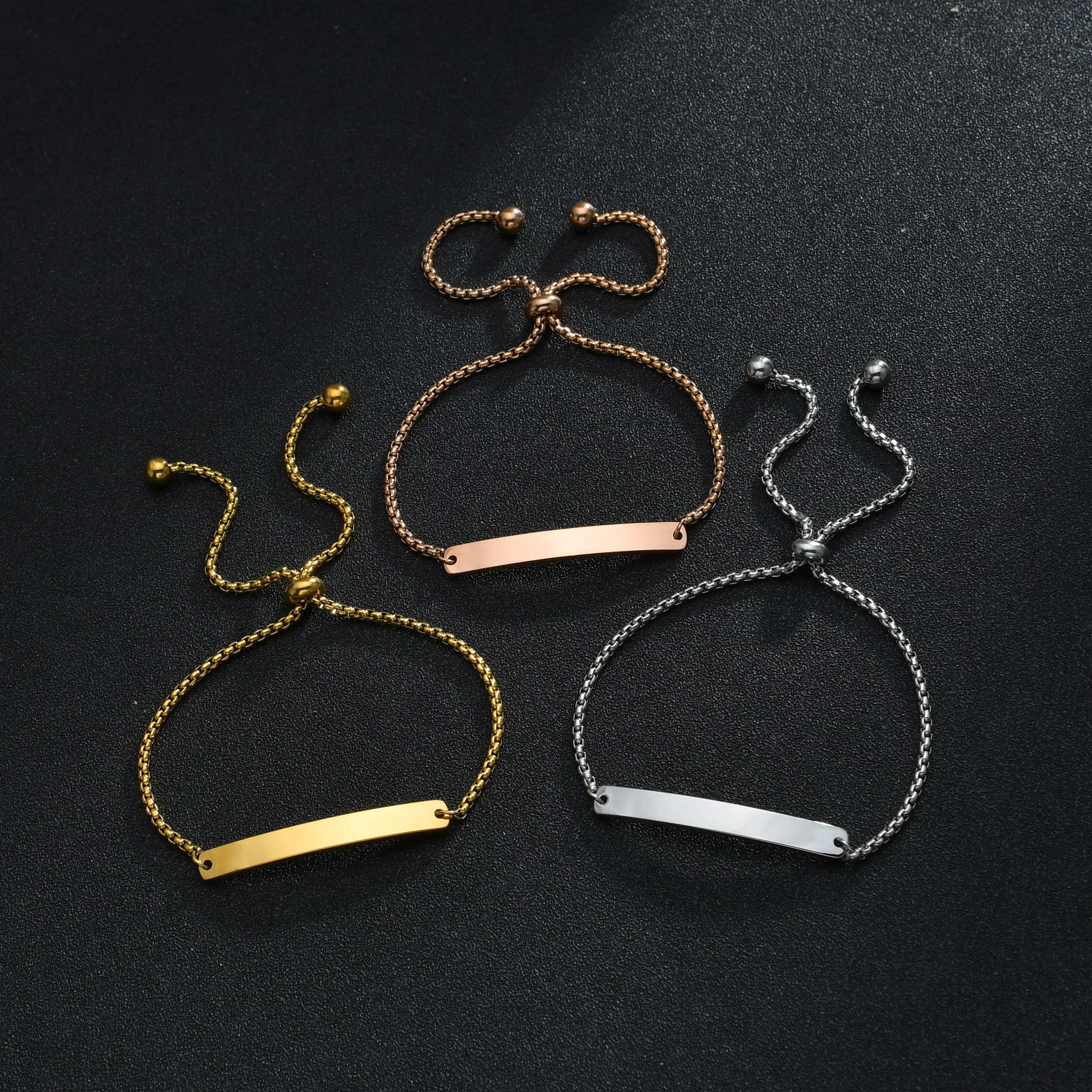 Punk Man Bracelets Hip Pop Gold Color Stainless Steel Thick Hand Chain Blank Bar Couple Men Women Family Jewelry Birthday Gift