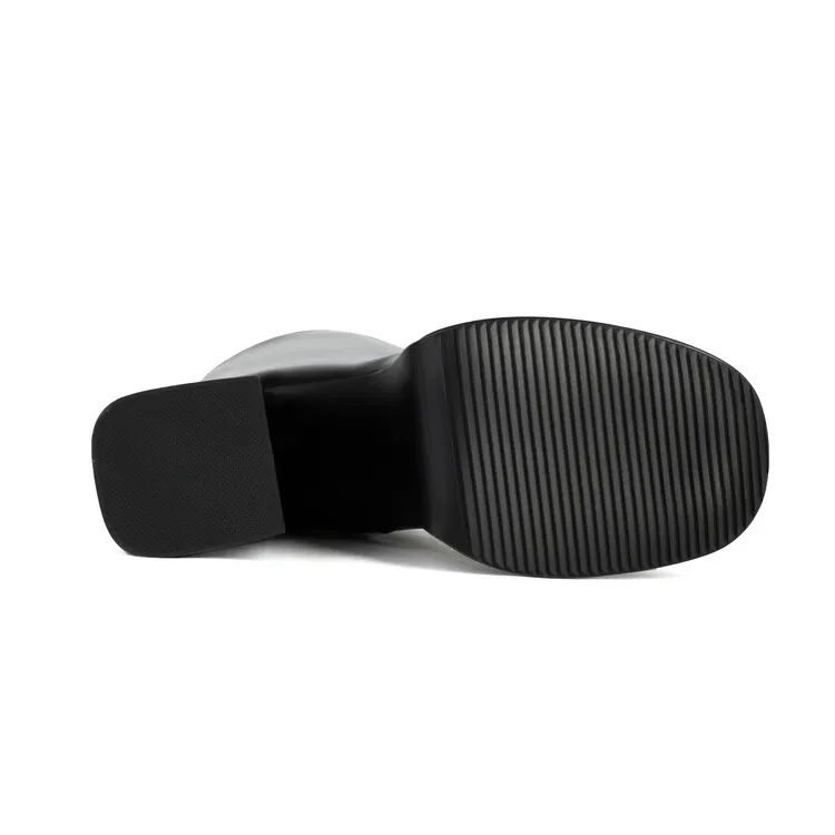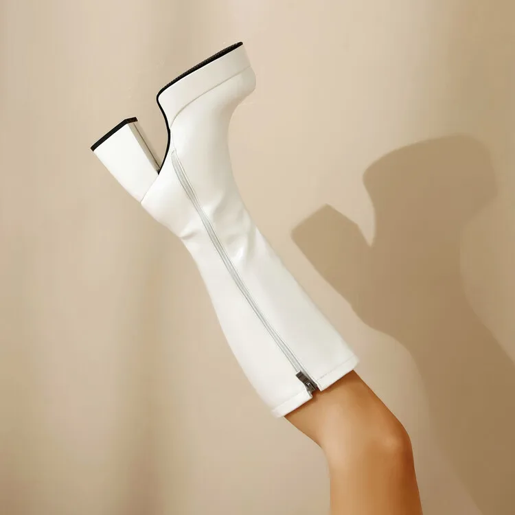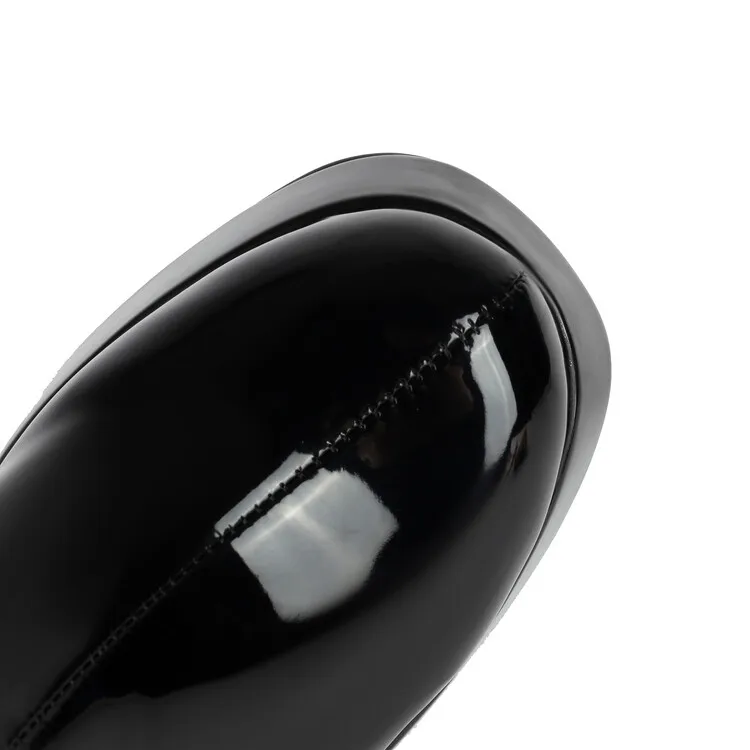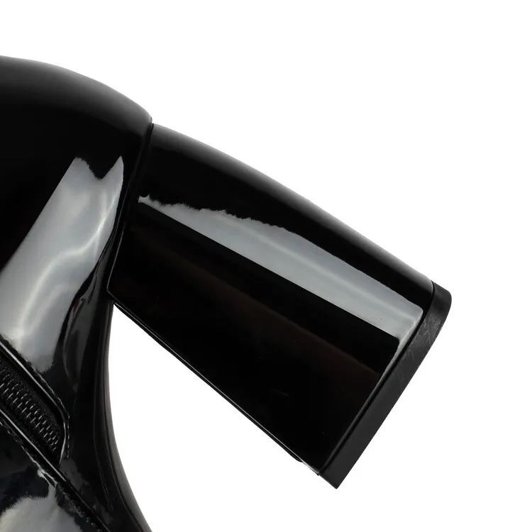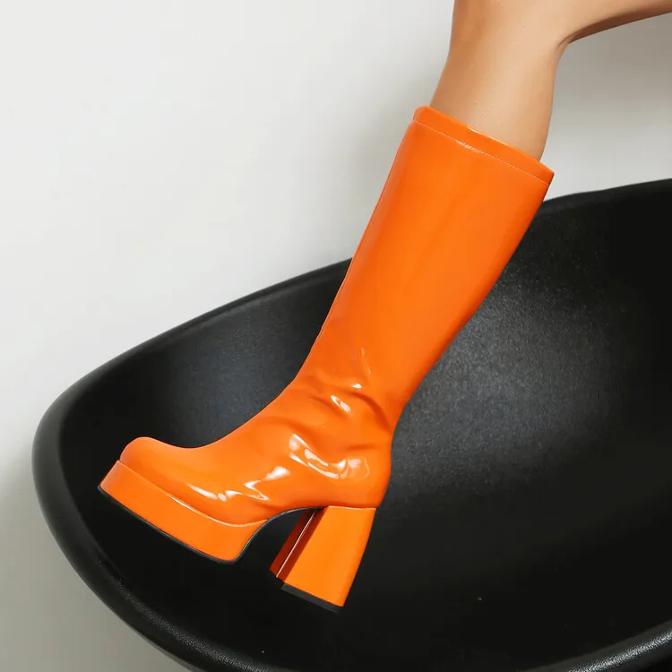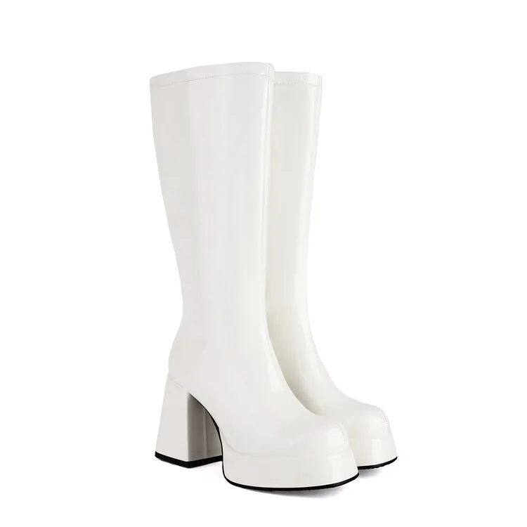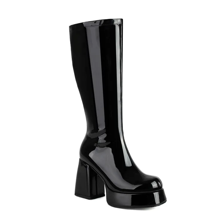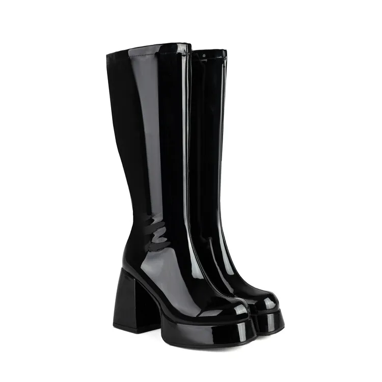 Purple Patent Leather Knee High Boots Waterproof Platform 10cm Thick Heel Bar Stage Boots 35-48 Zip Square Head Long Boots Side