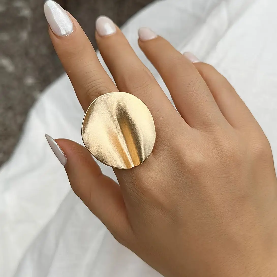 PuRui Unique Irregular Big Cuff Rings for Women Open Matte Gold Color Finger Rings Adjustable Jewelry Punk Party Wedding Gifts